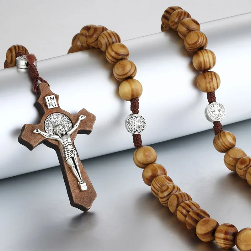 Религиозный Деревянный Антикварный крест четки кулон ожерелье Иисуса Святого Бенедикта из бисера ожерелье для мужчин женщин Ювелирные изделия Подарки воротник