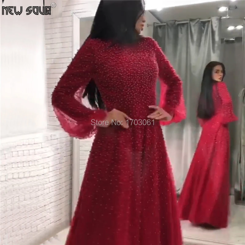 Длинное вечернее платье в мусульманском стиле, красное, Средний Восток, с кристаллами, Дубай, саудовские, арабские вечерние платья 2020