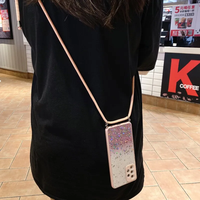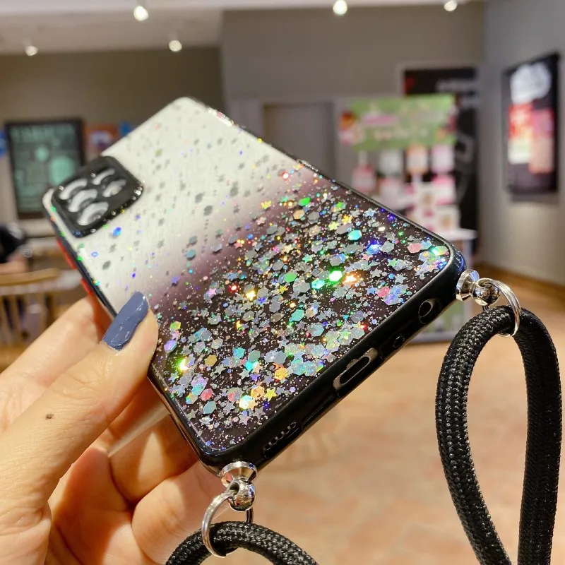 Блестящий чехол через плечо для Samsung Galaxy S21 Plus S20 FE S21 Ultra A51 A52 A72 A32 ожерелье ремешок градиентный чехол для телефона