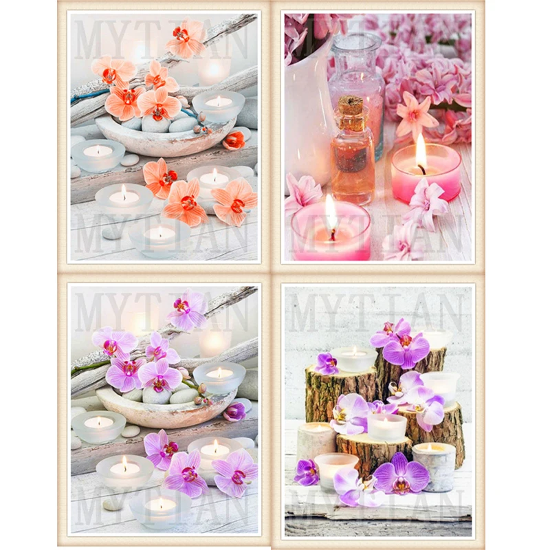 Орхидея камень и свеча DIY Алмазная Картина Вышивка крестом наборы Алмазная вышивка узоры цветы искусство домашнего декора