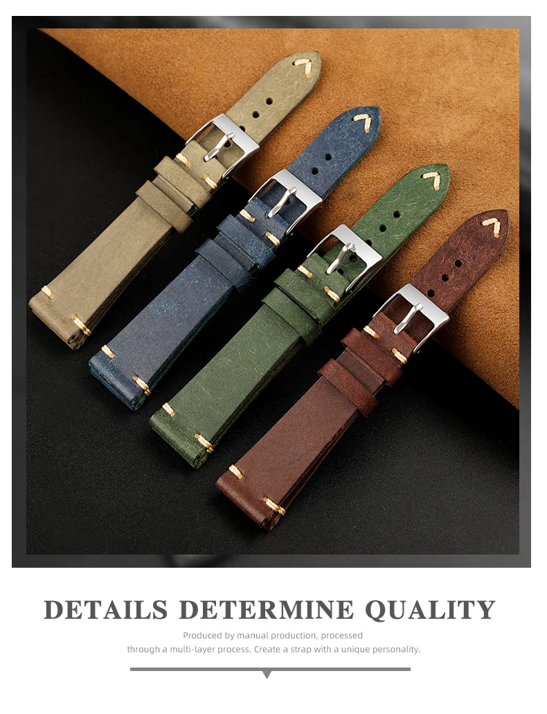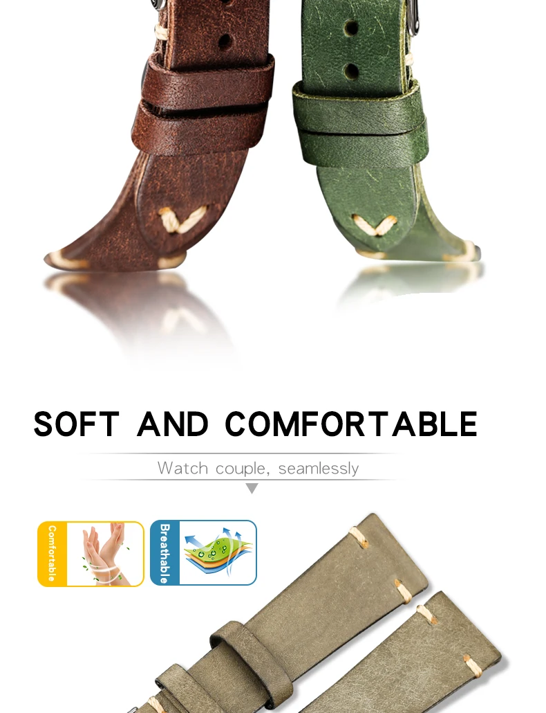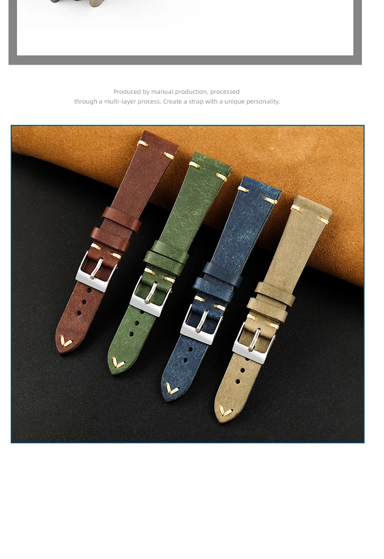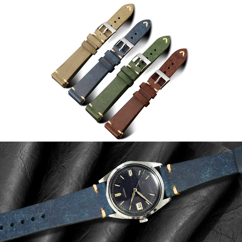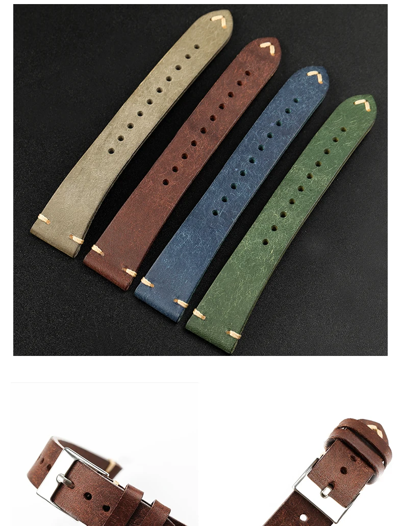 Итальянский кожаный ремешок для часов ручной работы, кожаный ремешок для часов под старину, мужской ретро браслет 20 мм 18 мм
