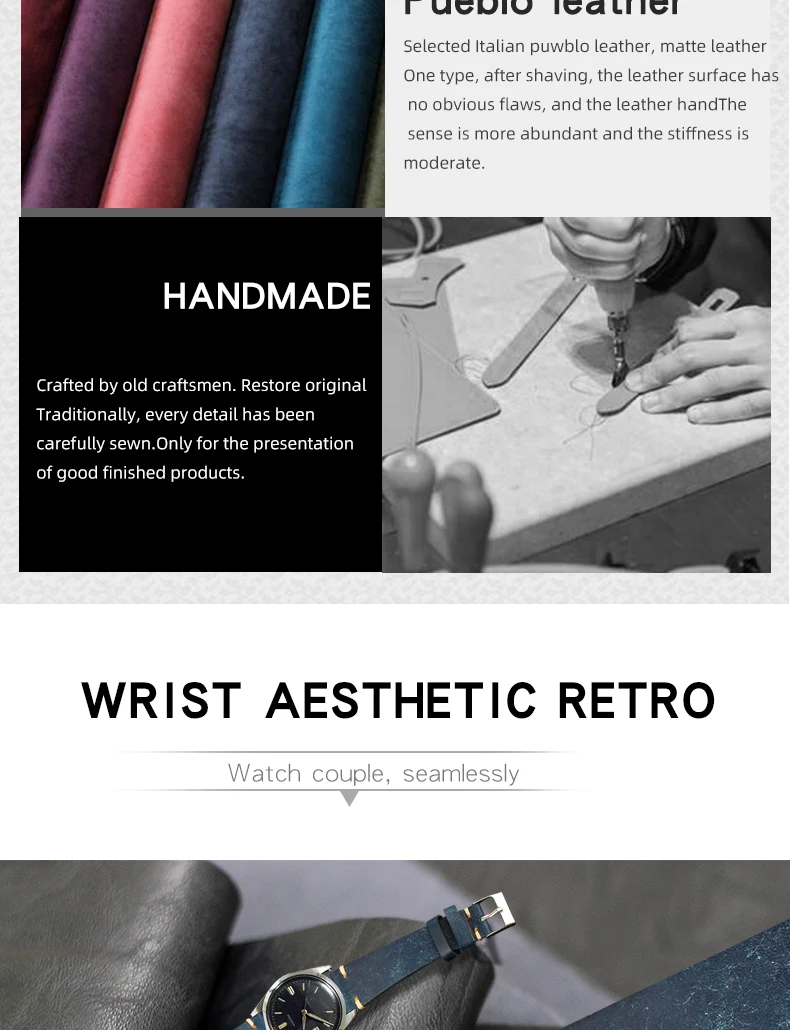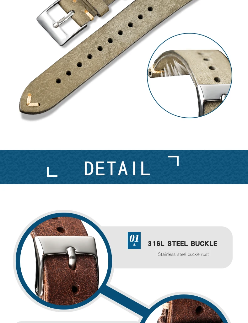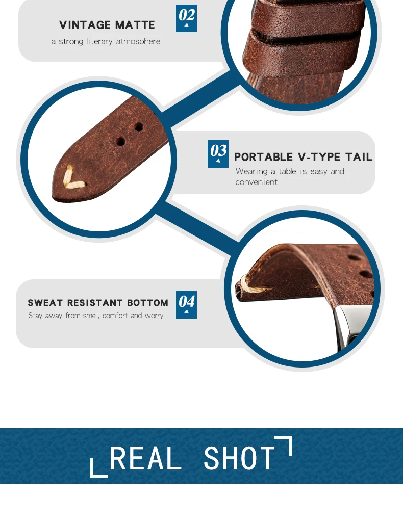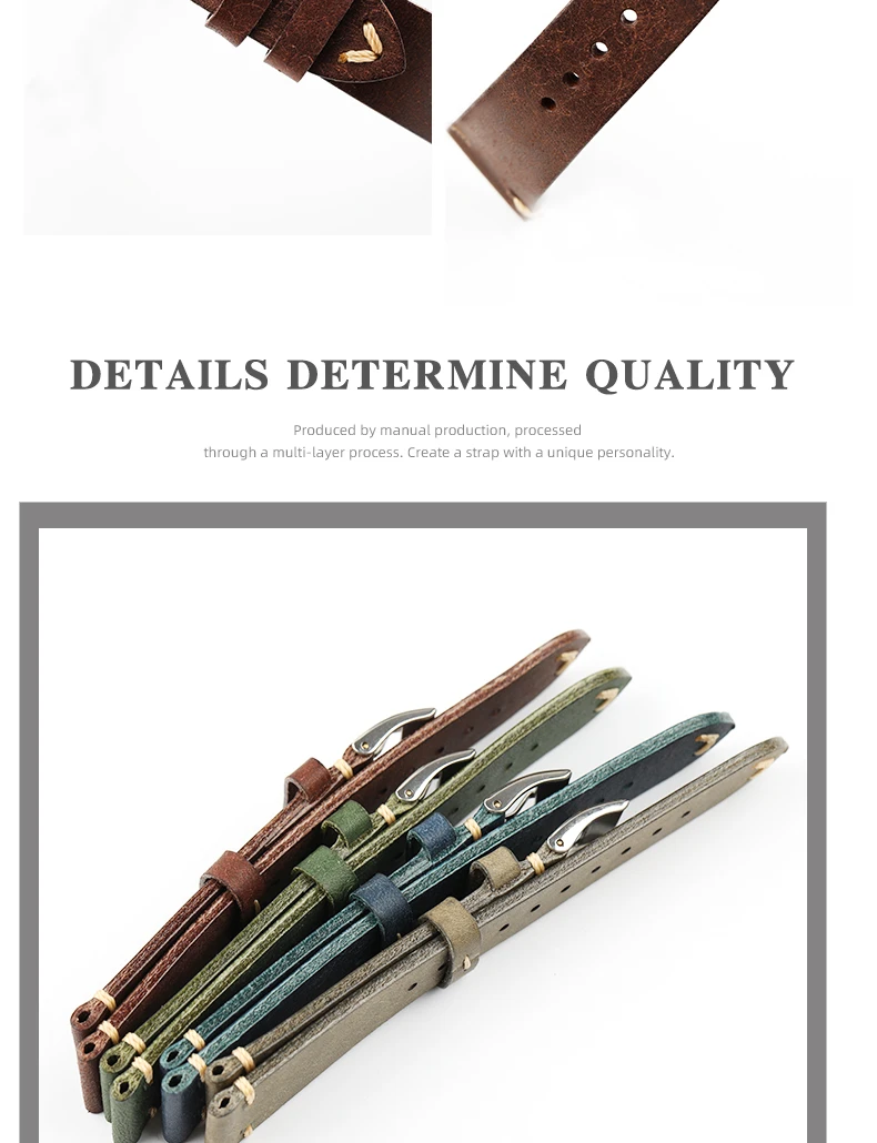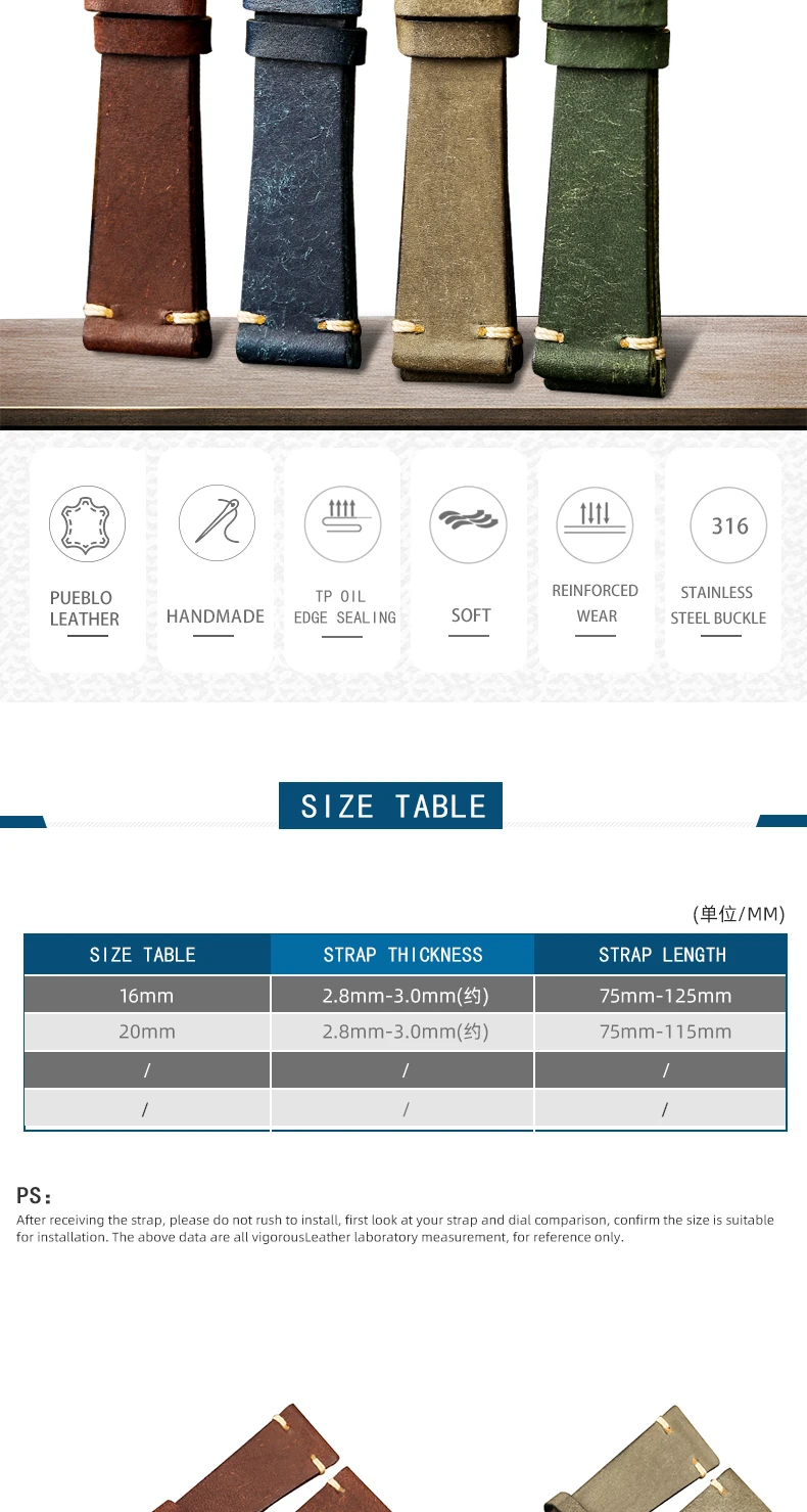 Итальянский кожаный ремешок для часов ручной работы, кожаный ремешок для часов под старину, мужской ретро браслет 20 мм 18 мм