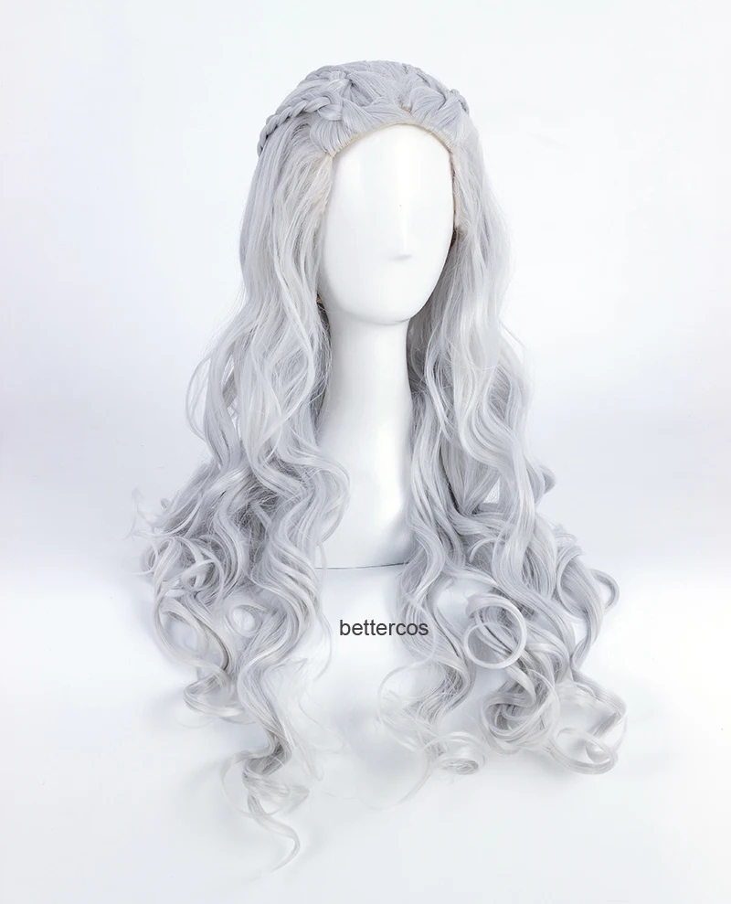 Парики для косплея Дейенерис Таргариен, длинные волнистые серебристо-серые термостойкие синтетические волосы + парик
