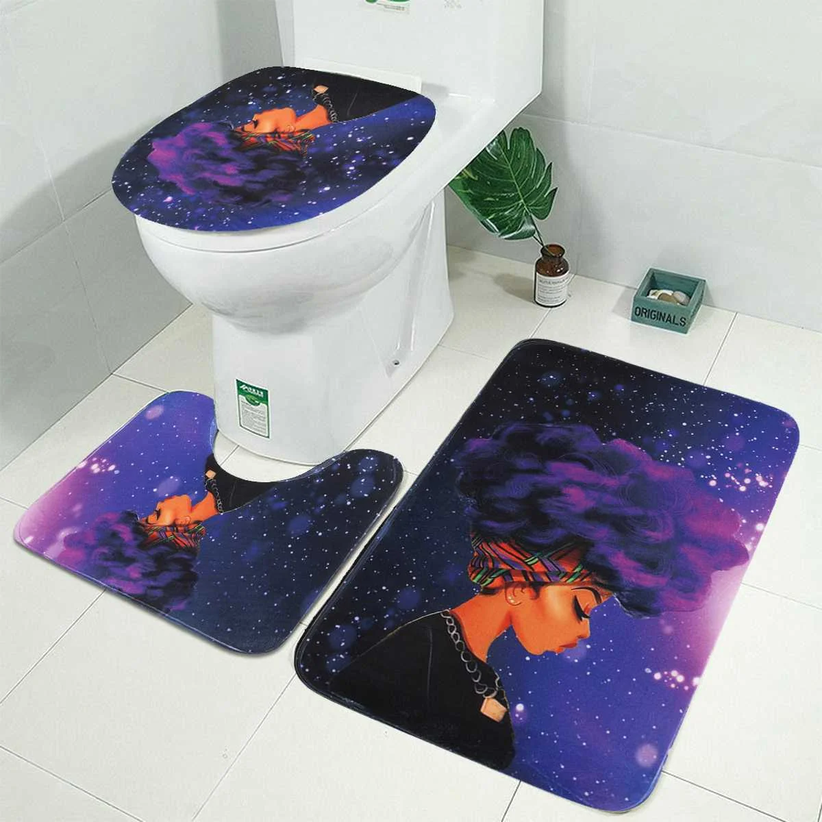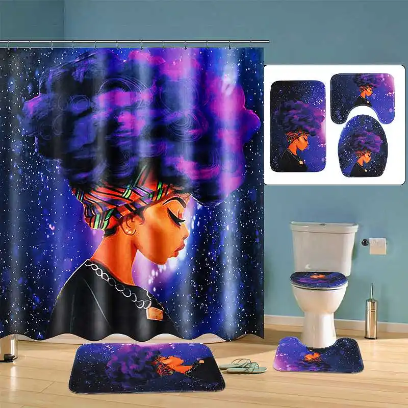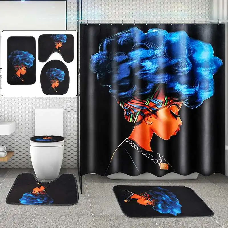 4 шт.компл., Африканский женский коврик для унитаза, коврик для ванной, водонепроницаемый полиэстер, набор для душевой занавески, для украшения ванной комнаты