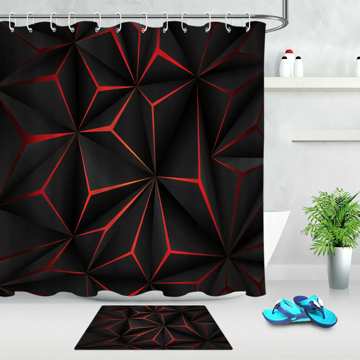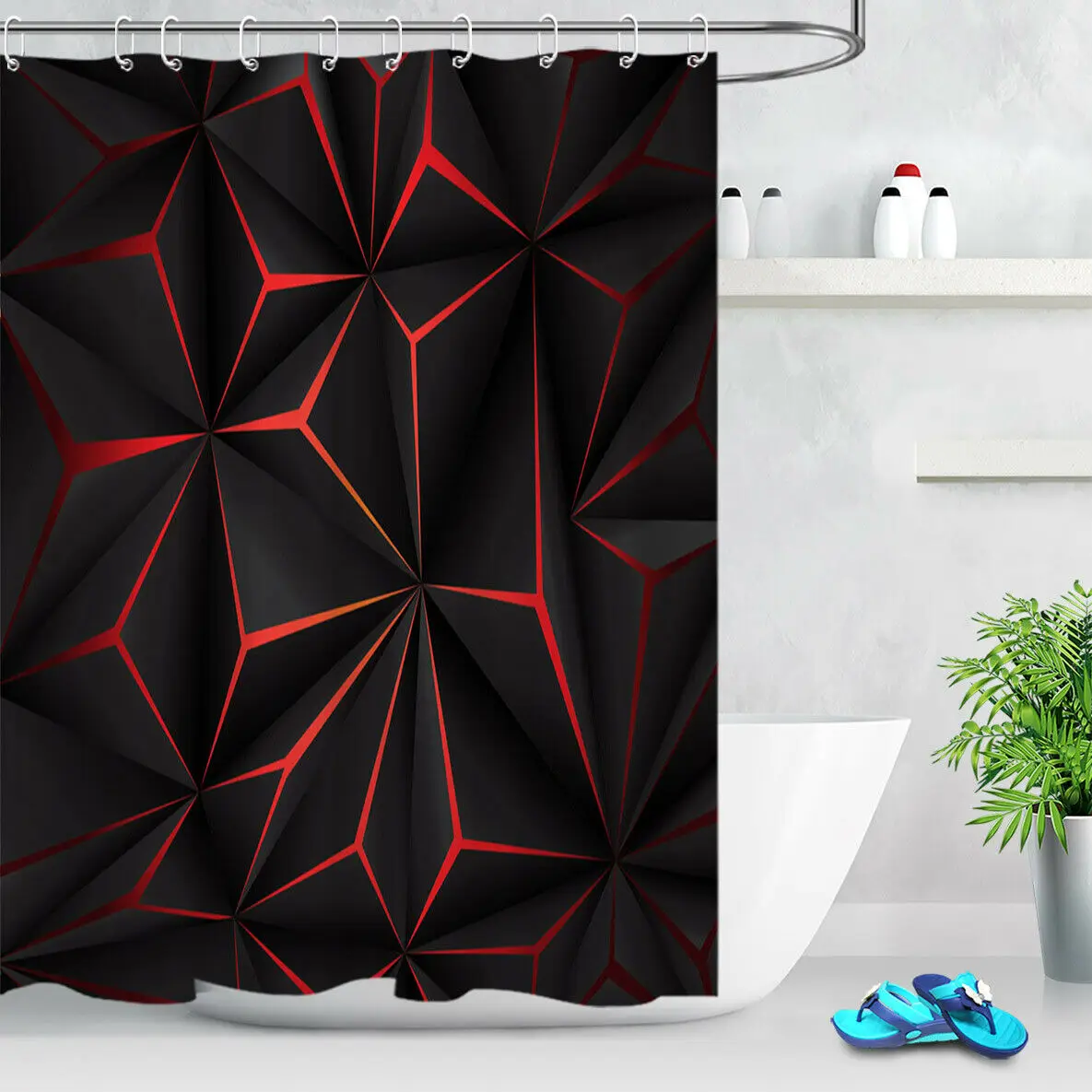 Абстрактная занавеска для душа с 3D черным и красным узором, комплект из полиэстерной ткани для ванной комнаты