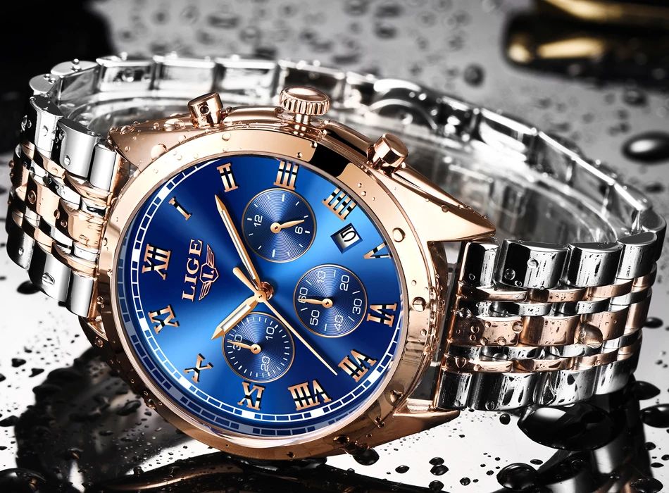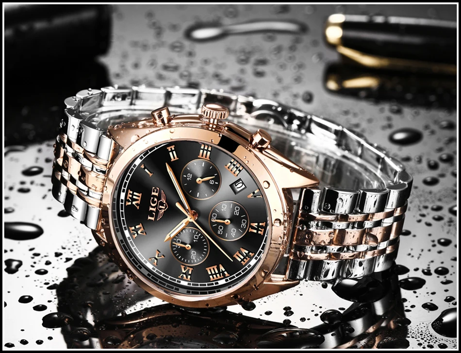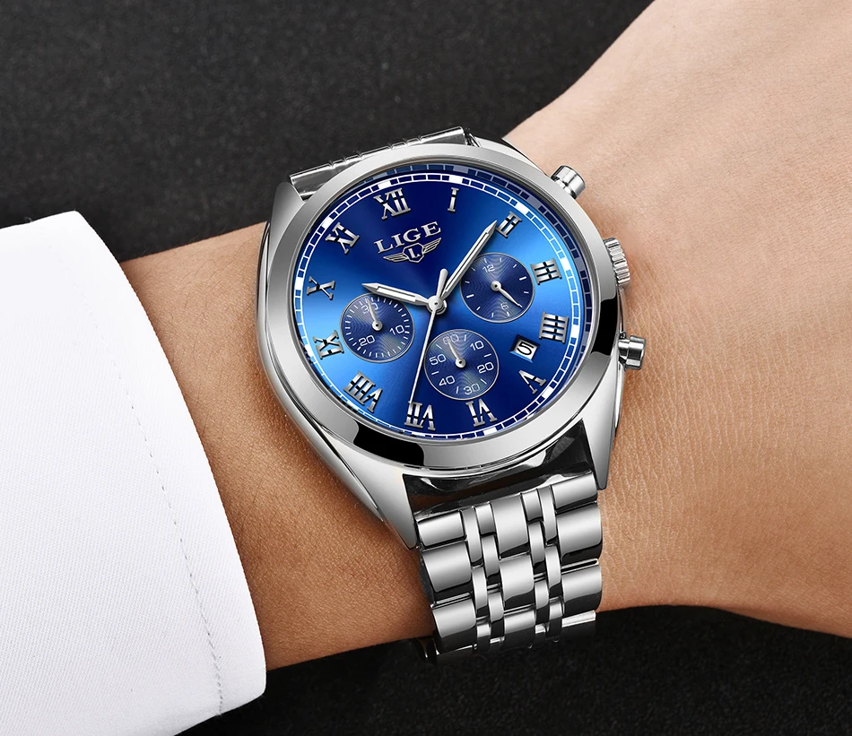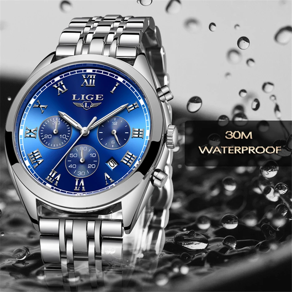 Часы наручные LIGE Мужские кварцевые, модные брендовые Роскошные Сп...