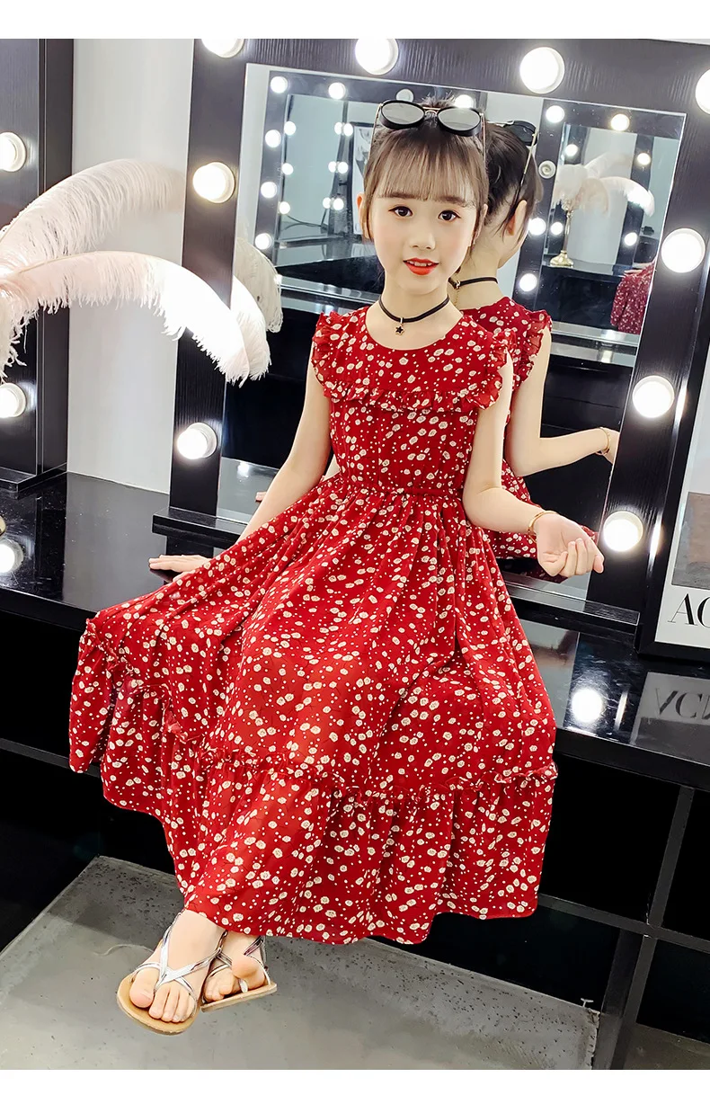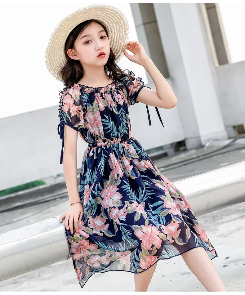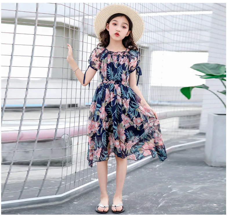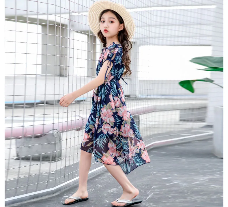 Платья с цветами для девочек, богемные детские платья, летние платья с цветочным принтом для девочек, одежда для девочек-подростков 6, 8, 12, 14 лет