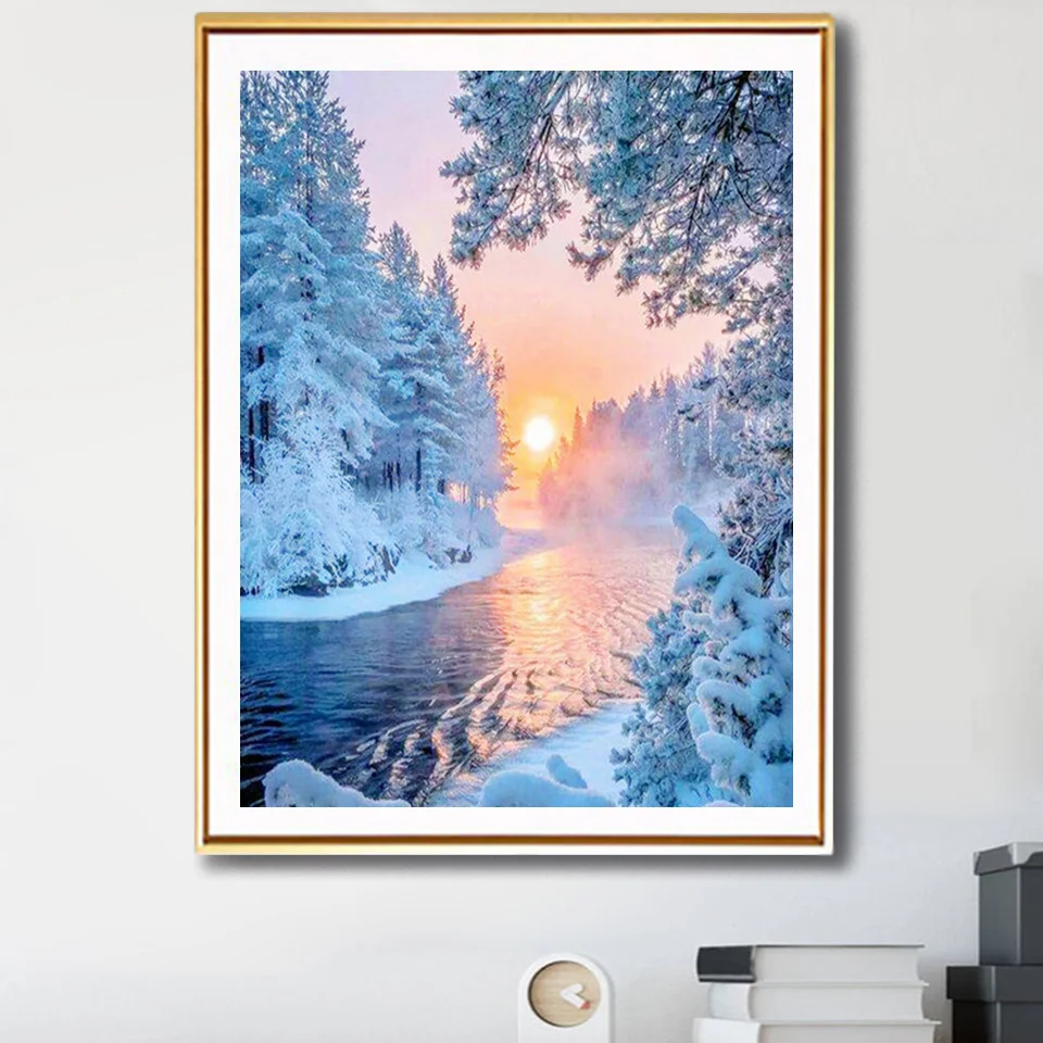 Алмазная вышивка с квадратными стразами, зима Ландшафтная мозаика с бриллиантами, снежный пейзаж, 5D алмазная живопись, вышивка крестом, подарок для Стразы