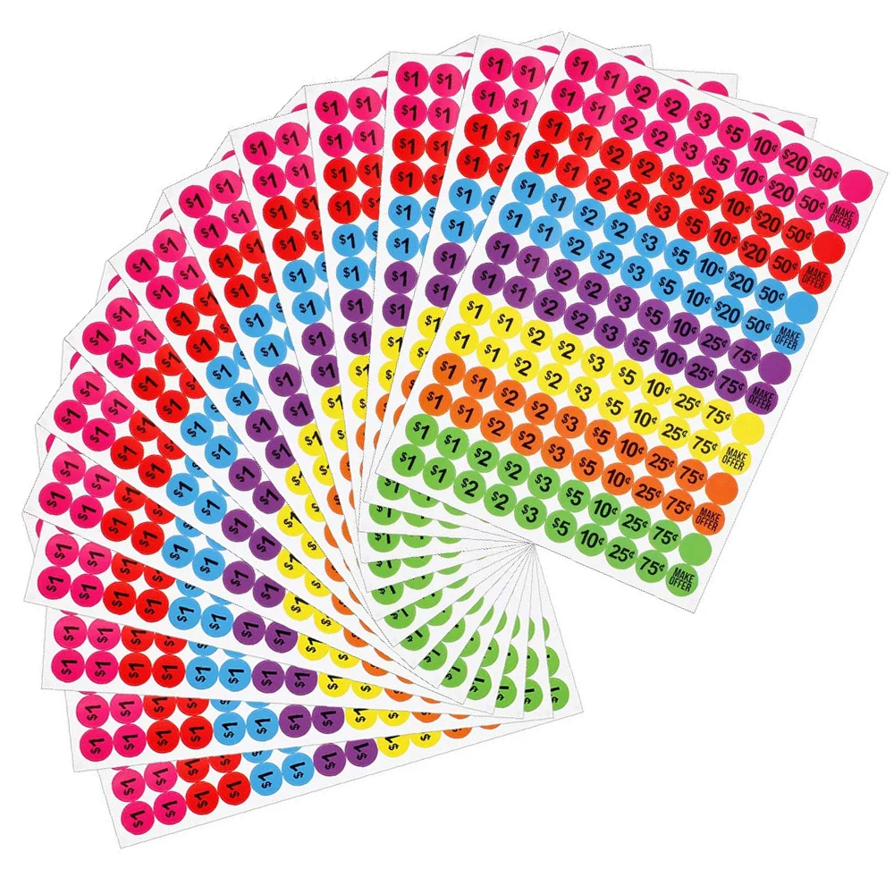Различные печати: на каждом листе есть несколько штук по 1 доллару, 2 доллара, 3 доллара, 5 долларов, 10 центов, 25 центов, 50 центов и 75 центов, несколько пустых наклеек и несколько принтов «сделайте предложение» могут удовлетворить ваши основные потребности, подходят для применения на рынках и в магазинах
