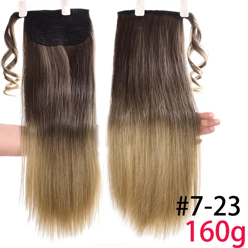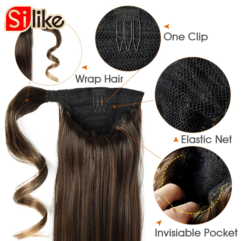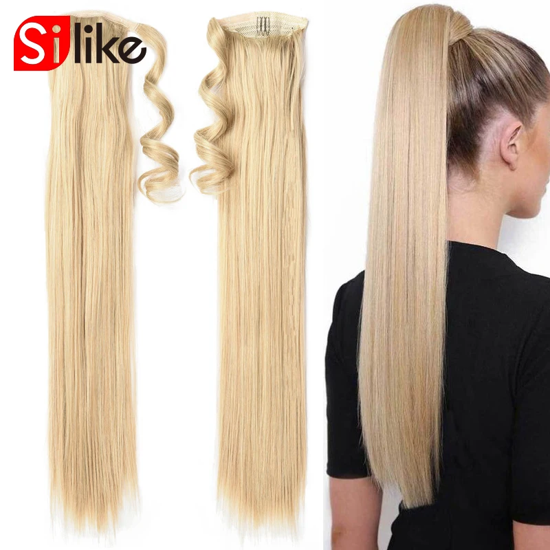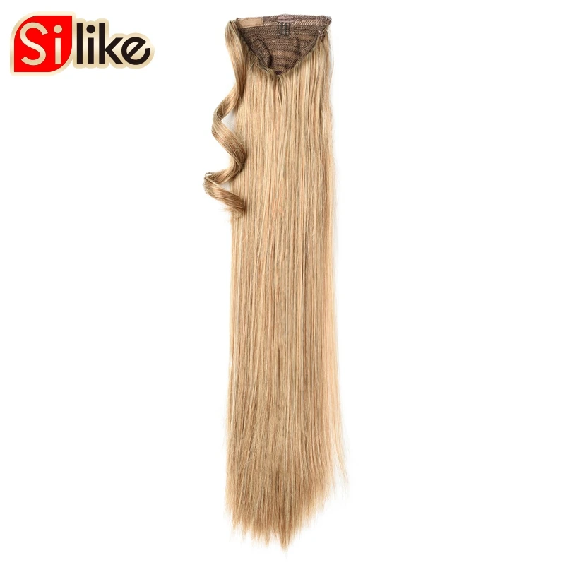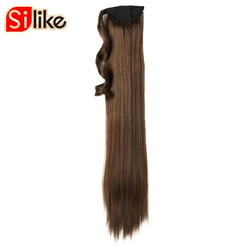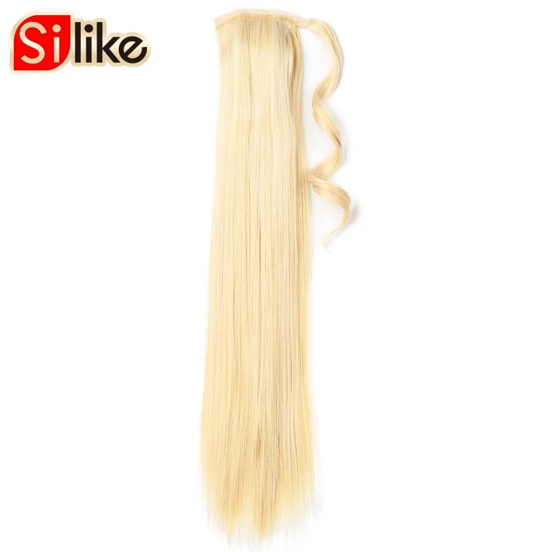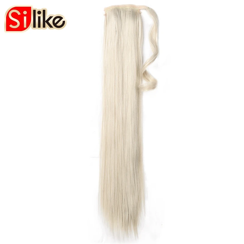 Синтетический прямой хвост Silike на шнурке, 24 дюйма, синтетический накладной хвост с заколками, удлинитель волос с конским хвостом