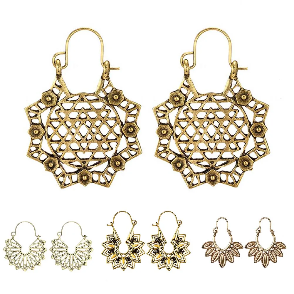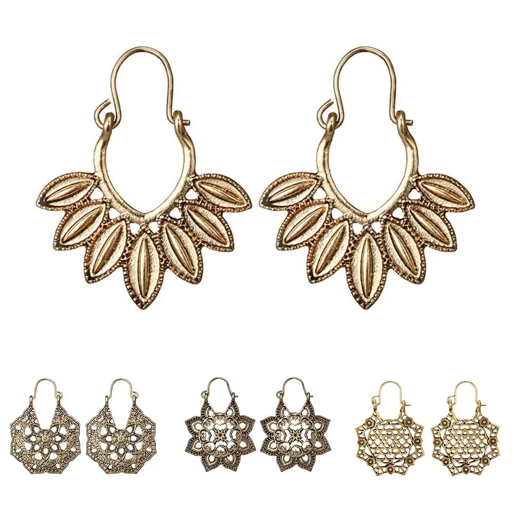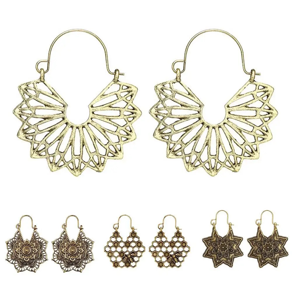 Богемные женские Висячие серьги, полые цветочные соты, филигранные обручи, сережки oorbellen, Ретро ювелирные изделия, подарок, женские серьги
