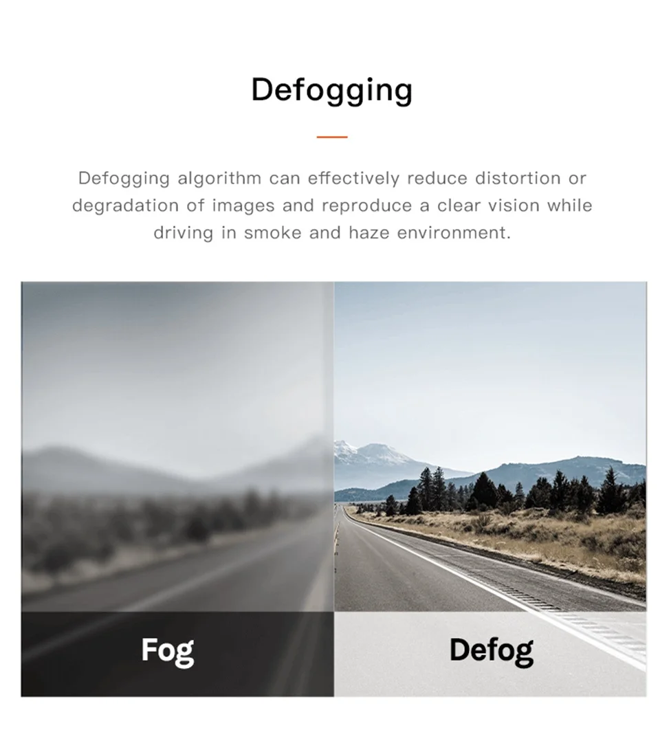 Алгоритм Defog может эффективно уменьшить искажения или деградацию изображений и воспроизвести четкое видение во время вождения в дымовой и дымовой среде.