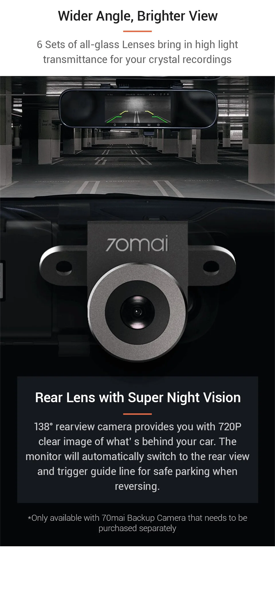 Камера заднего вида 70MAI HD доступна сейчас, ее необходимо приобрести отдельно.