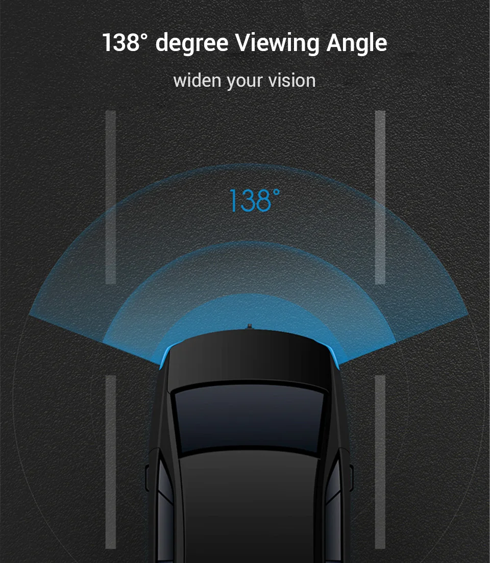 Широкий угол 140 ° позволяет записывать больший угол обзора и позволяет водителям видеть 4 полосы движения. Наряду с 6 стеклами, он может обеспечить светильник передачи, таким образом записывая кристально чистое видео.