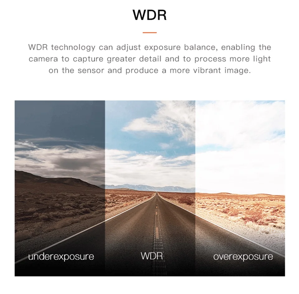 Технология WDR может регулировать баланс экспозиции, позволяя камере получать более подробную информацию в темноте и высокий светильник s, позволяя dash cam обрабатывать более светильник на датчике и производить более яркое изображение.