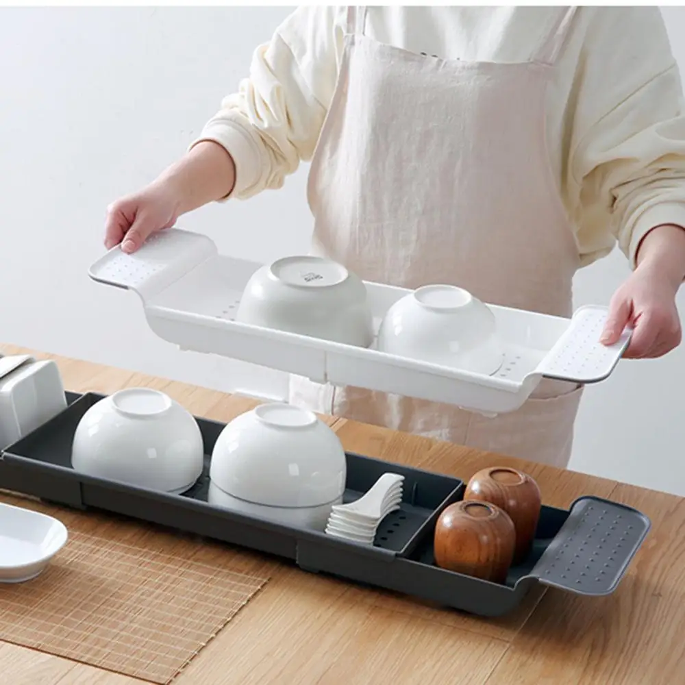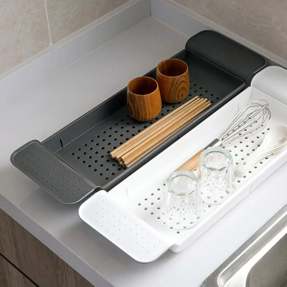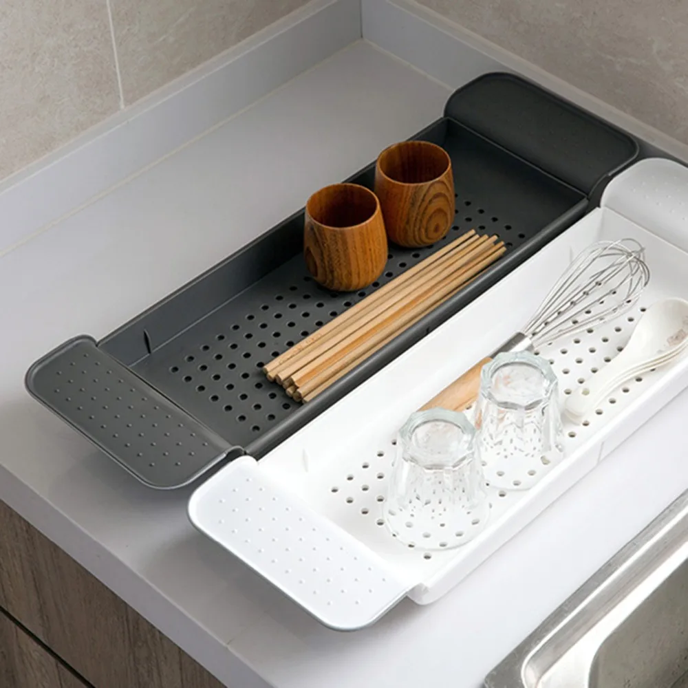 Телескопическая полка для ванны 55-78 см в японском стиле, полка для хранения кухонной раковины, Пластиковая Полка для посуды, полка для чашек