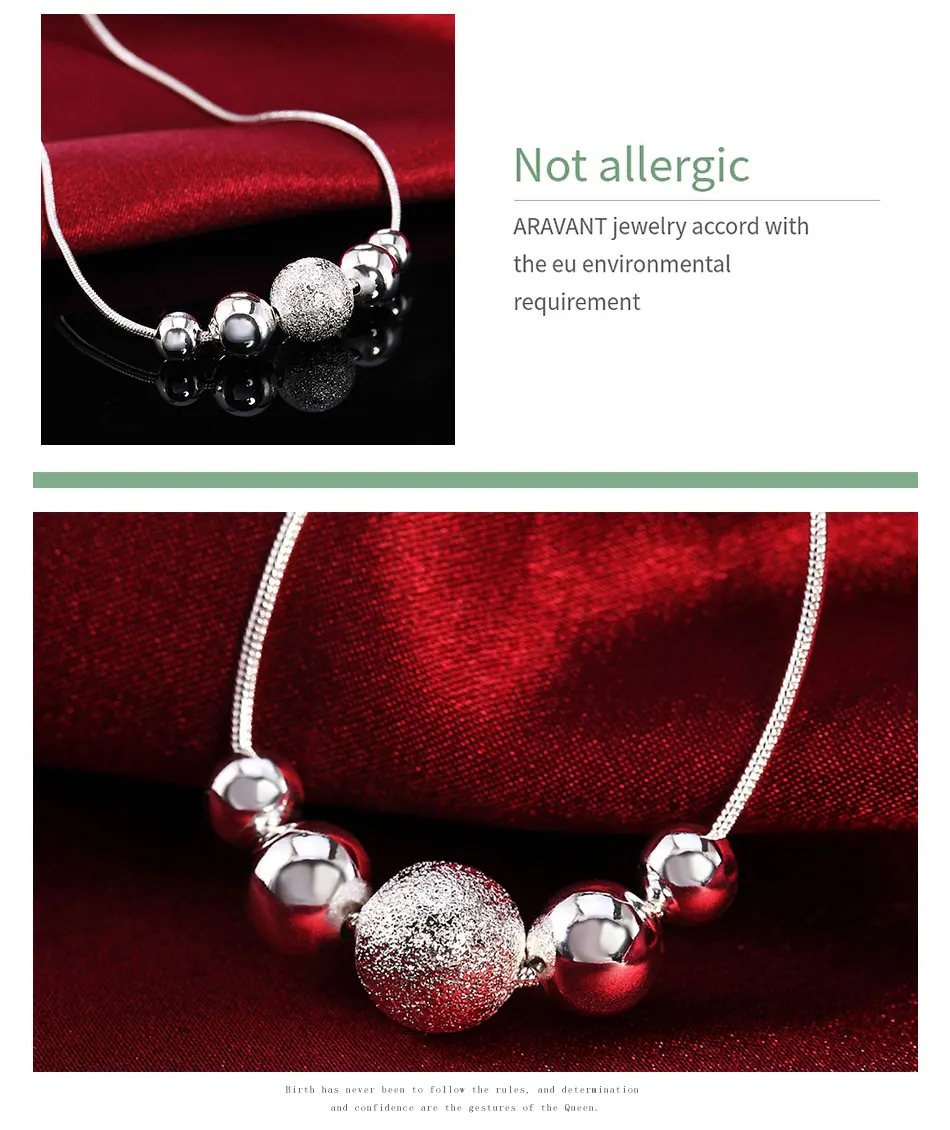 Ожерелье из серебра 925 пробы с гладким шлифовальным шариком, цепочки для женщин, модные ювелирные украшения