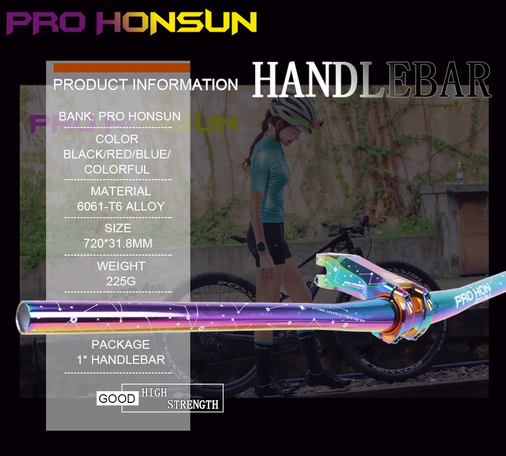 Руль велосипедный PROHONSUN 720x31,8 мм, высокопрочный, из алюминиевого сплава, Радужный