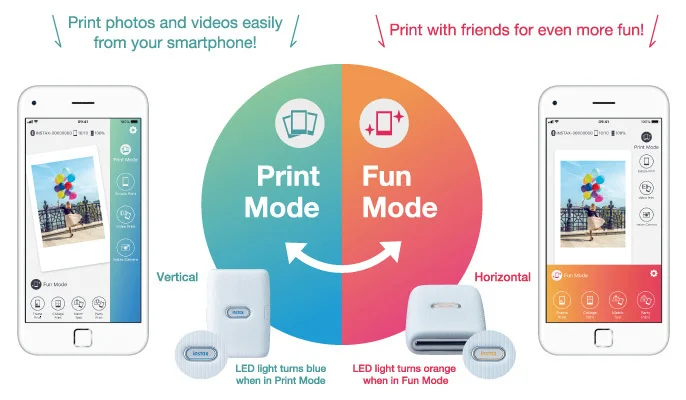 -Реальные instax принты-Печать вместе в веселом режиме-Печать с видео-Контроль за движением