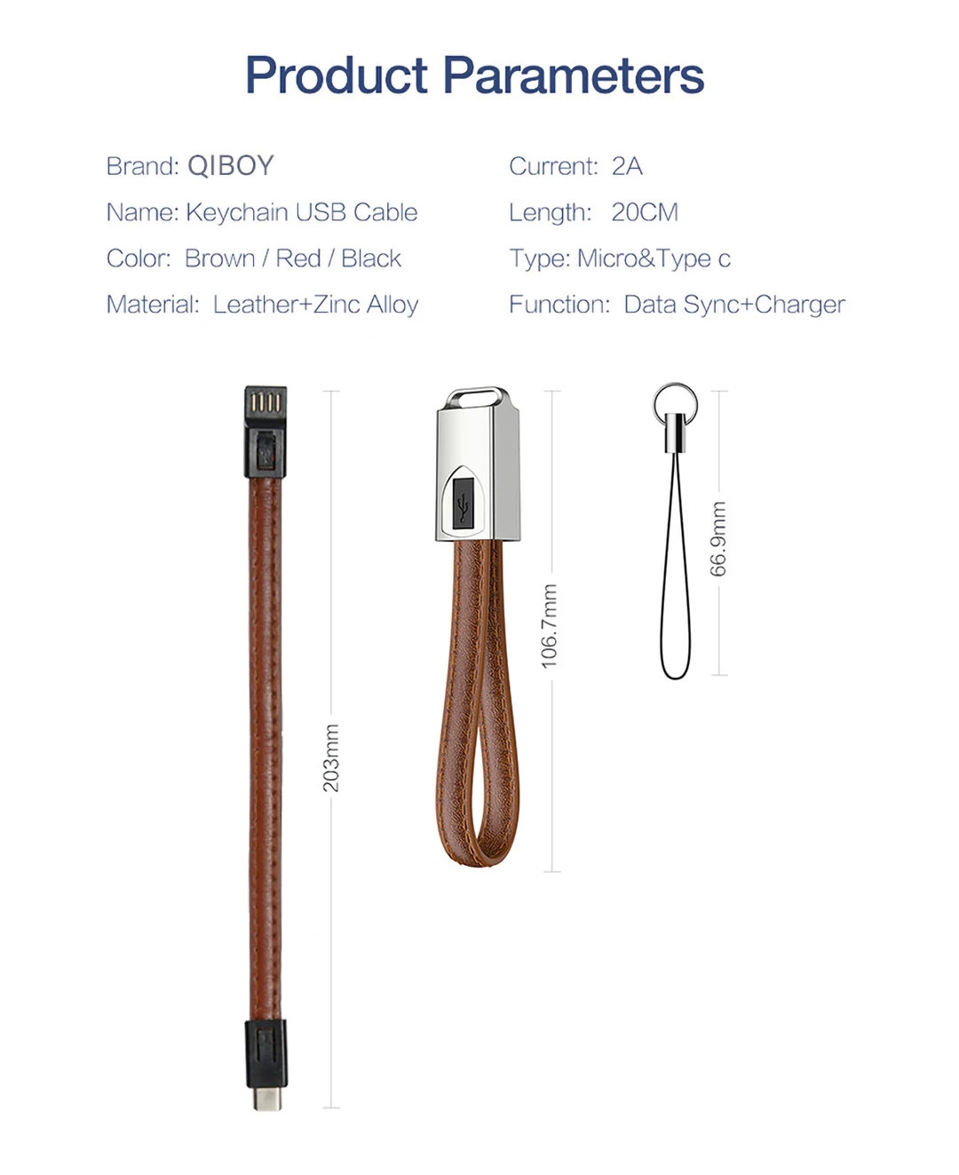 USB-кабель для ключей с разъемом Micro USB Type-C, кожаный короткий мини-кабель для зарядки, 20 см, для Samsung S9, S8, Xiaomi Redmi, Android Phone, шнур 2 А