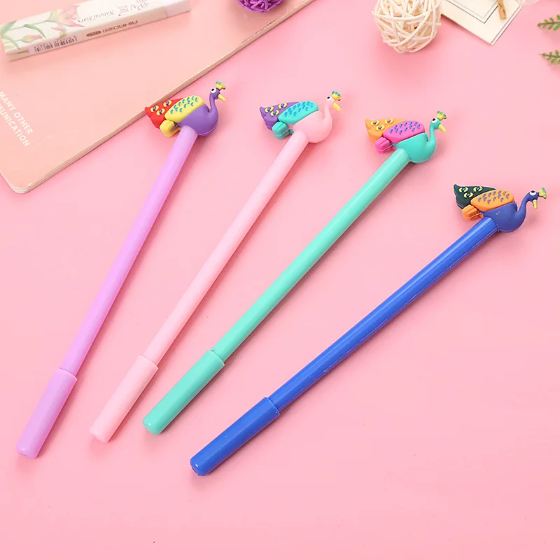 50 шт.лот мультяшная гелевая ручка с павлином креативные Обучающие канцелярские принадлежности офисные принадлежности авторучка для подписей черная ручка для рисования на водной основе