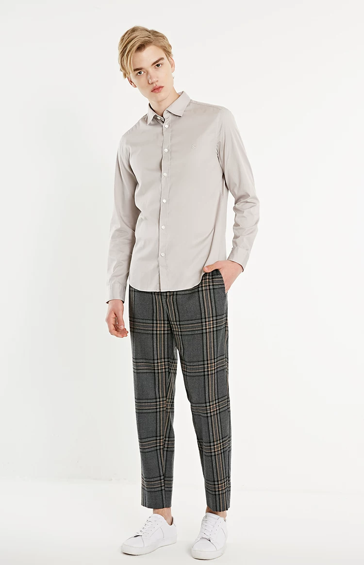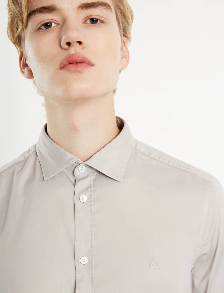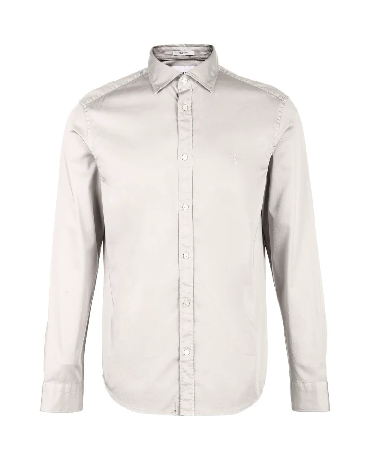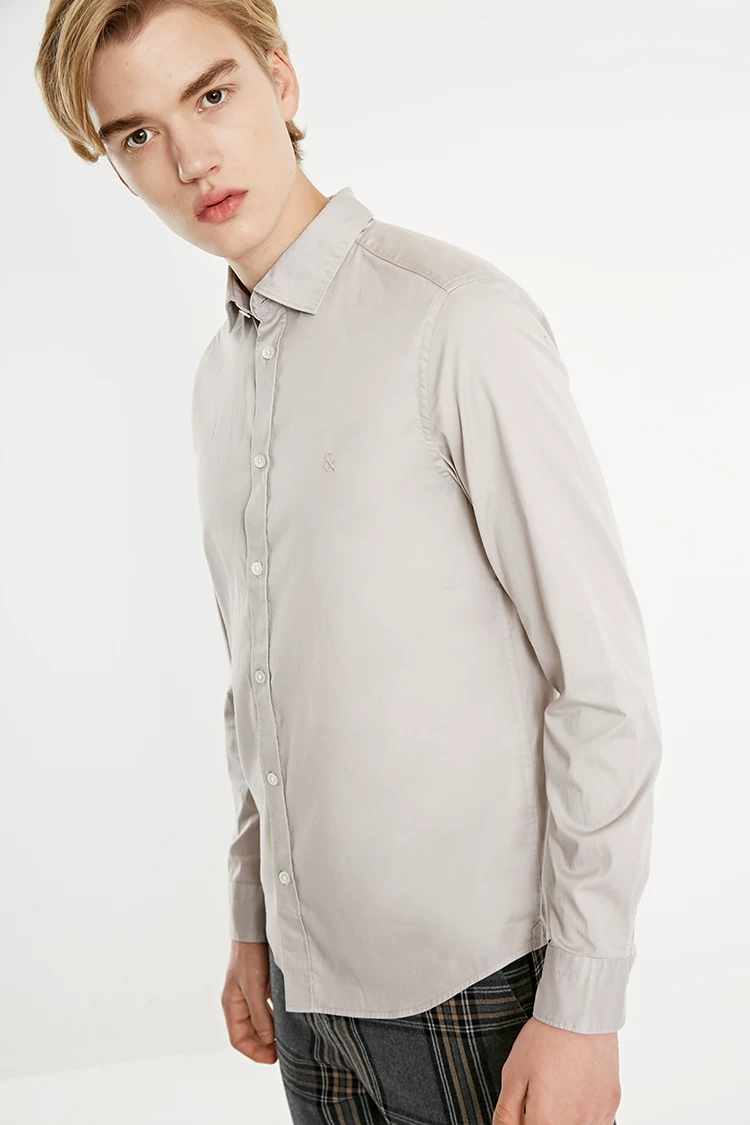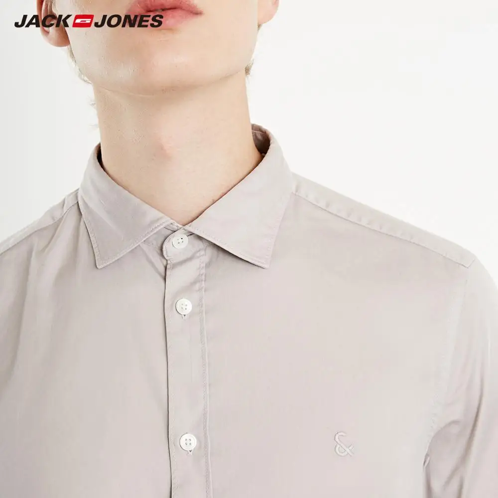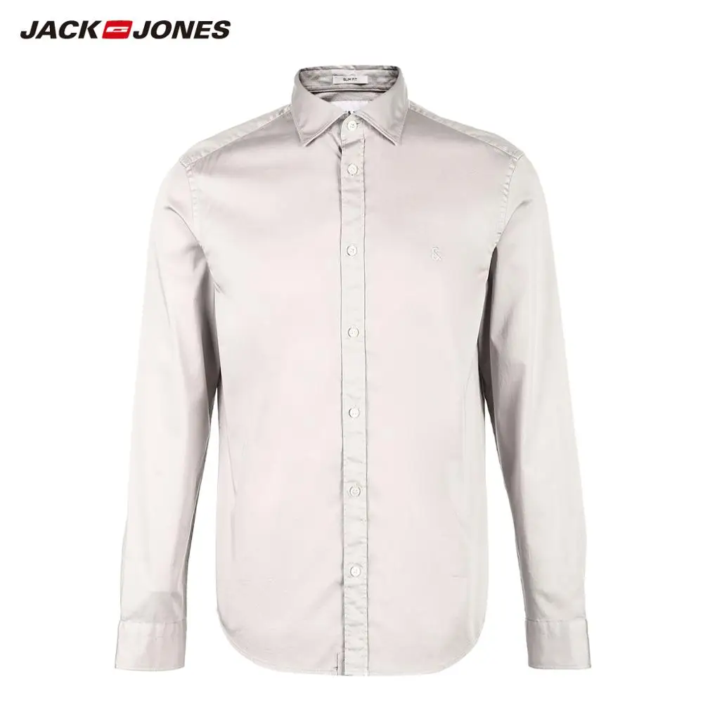 Мужская Базовая рубашка с длинными рукавами и вышивкой JackJones, 100% хлопок, однотонная, 219105576