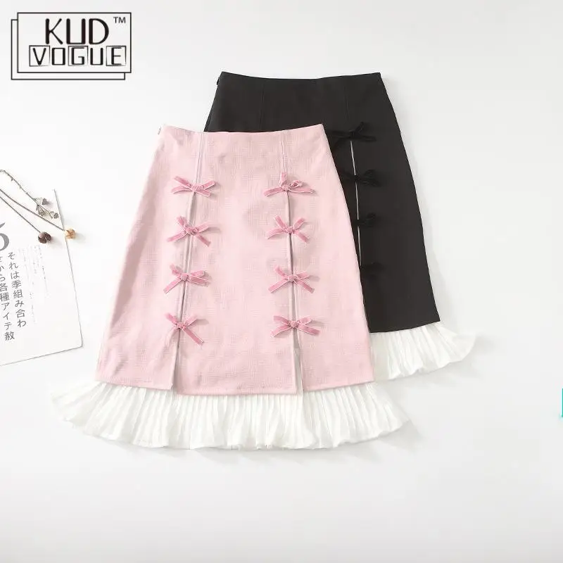 Плиссированная юбка принцессы в стиле Лолиты, Милая Мини-юбка-трапеция из шифона в японском стиле, с двойной завышенной талией и бантом, весна-лето