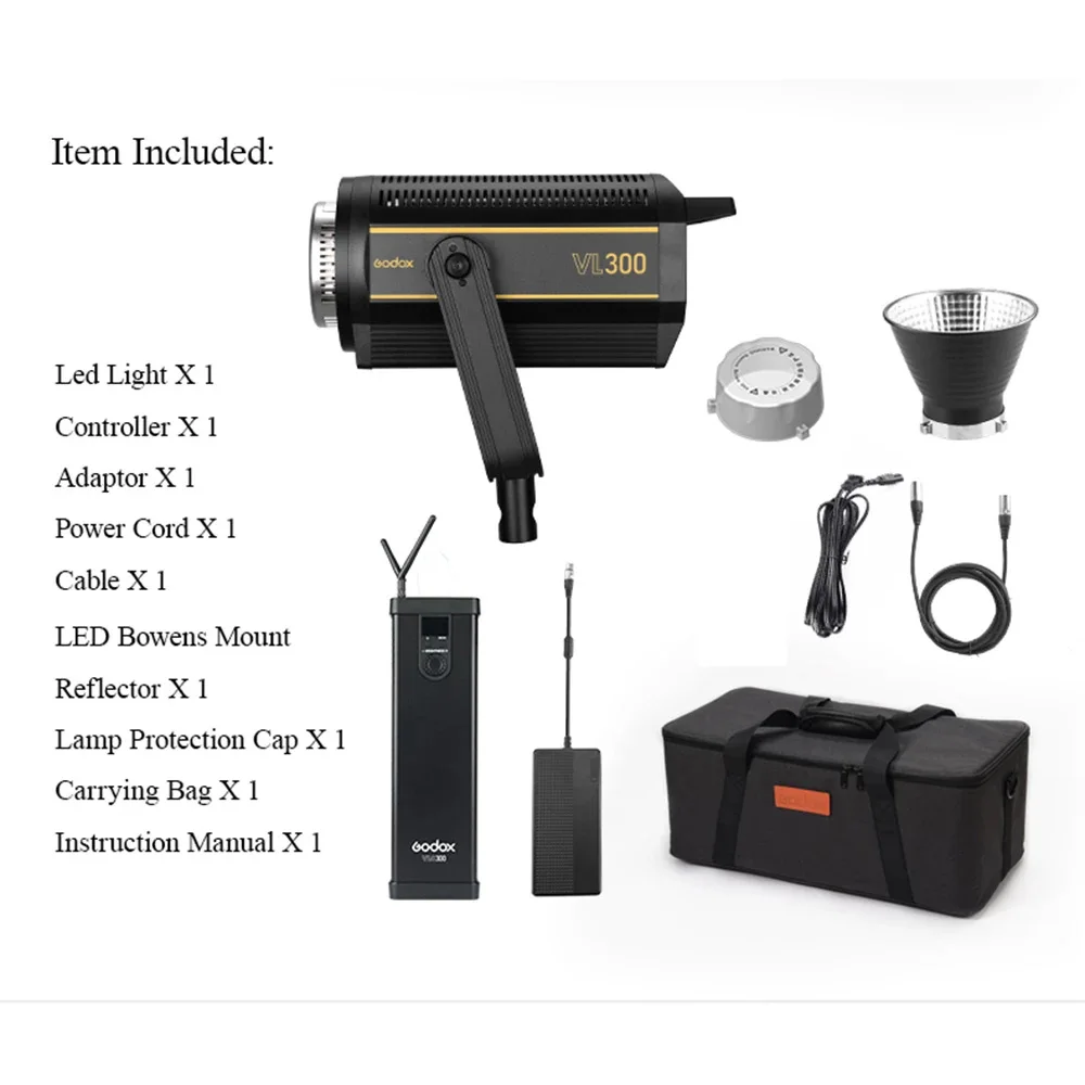 Светодиодная лампа для видеосъемки Godox VL300, 300 Вт, 5600K, белая версия, непрерывный выход, крепление Bowens, студийное освещение, Поддержка приложения