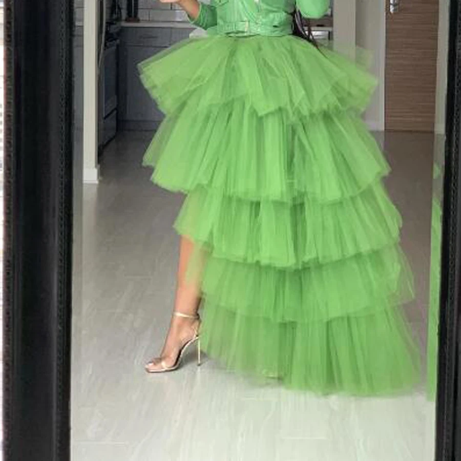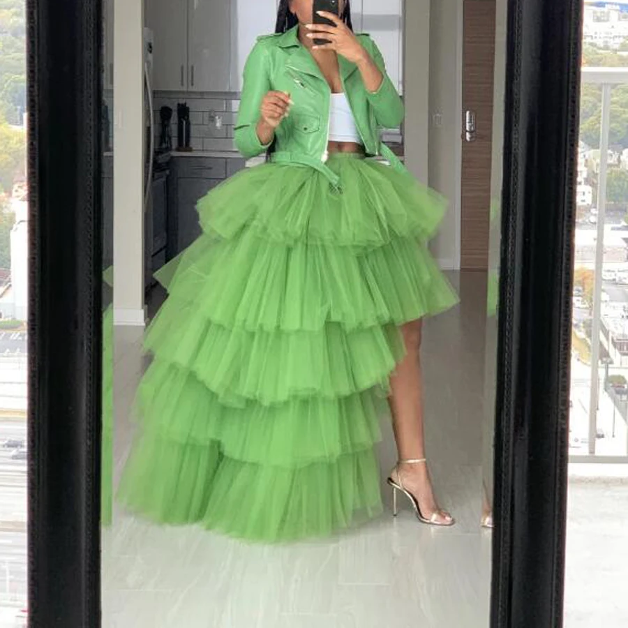 2020 Весенняя травяная зеленая многоярусная юбка из фатина с оборками, Женская эластичная длинная пышная фатиновая юбка на заказ, женская модная пачка