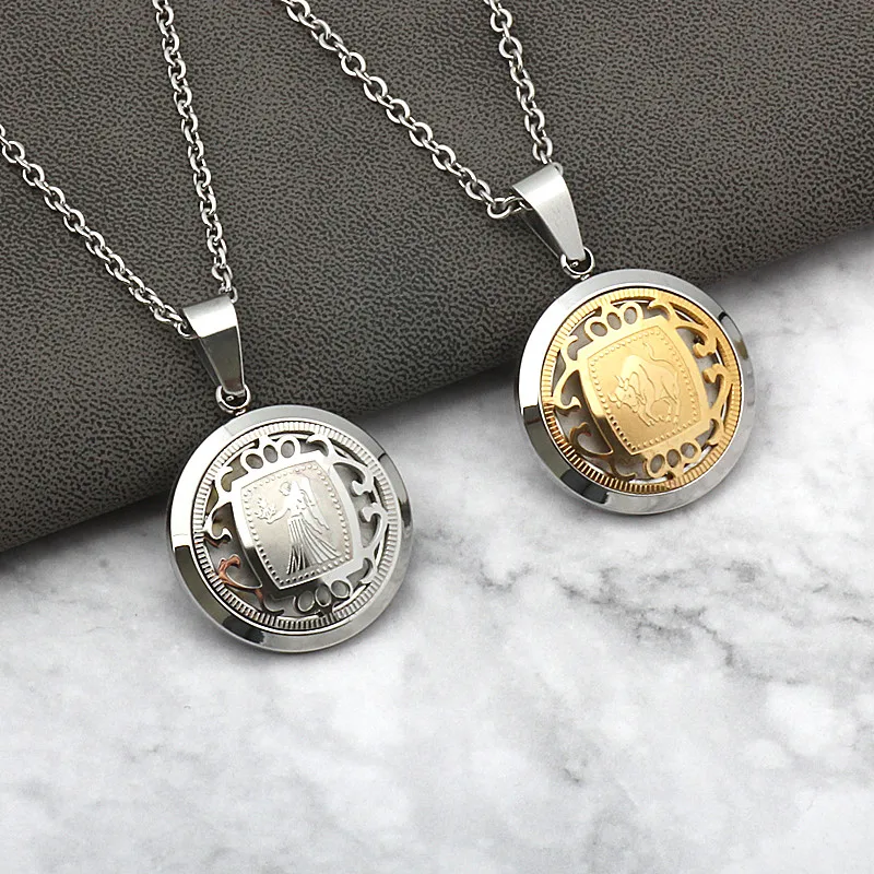 Ожерелье со знаками Зодиака из нержавеющей стали для мужчин и женщин, подвеска со знаками зодиака Лев, близнецы, Телец, Девы, знаки зодиака, Прямая поставка, 12 созвездий