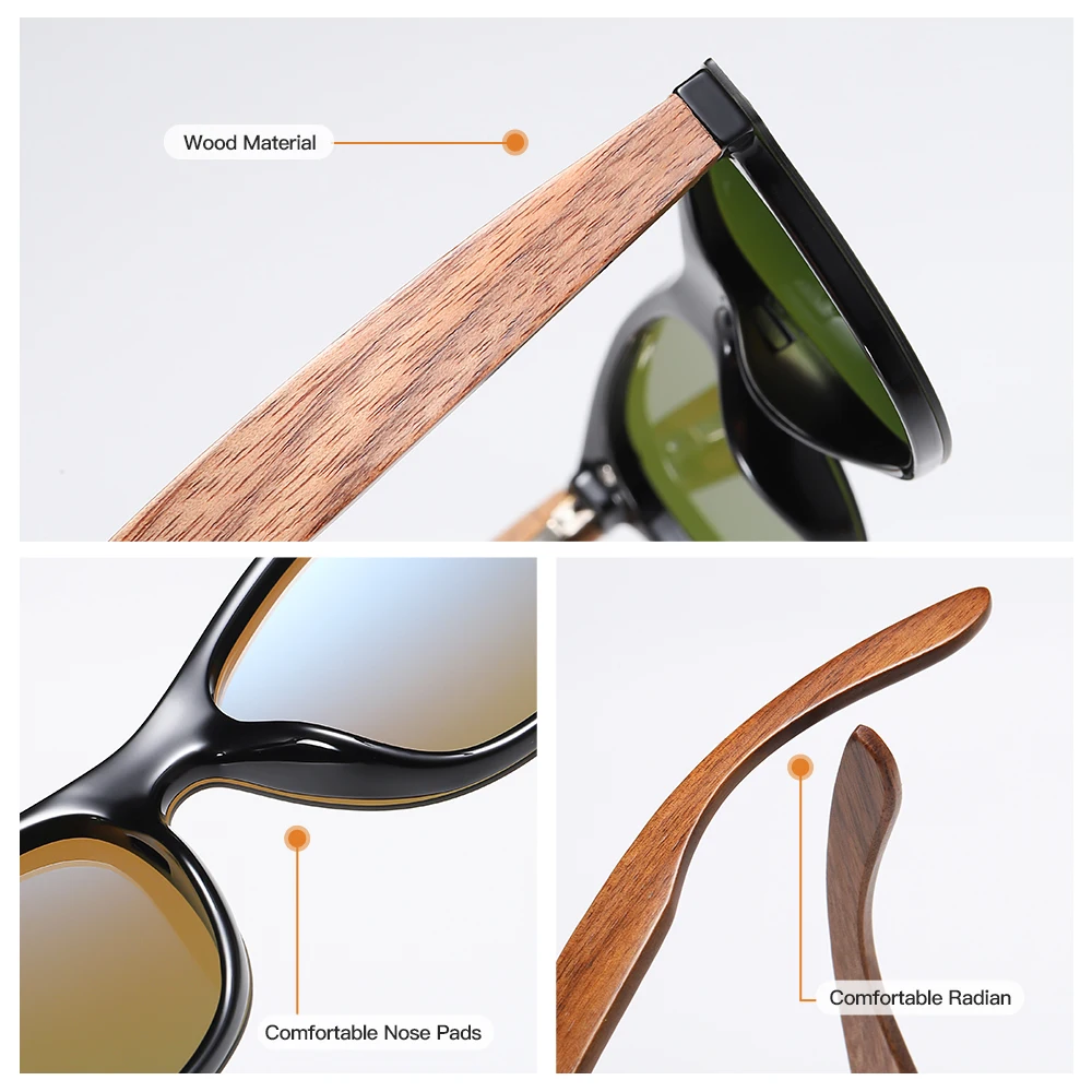 Солнцезащитные очки Kithdia, деревянные зеркальные очки в стиле рет...