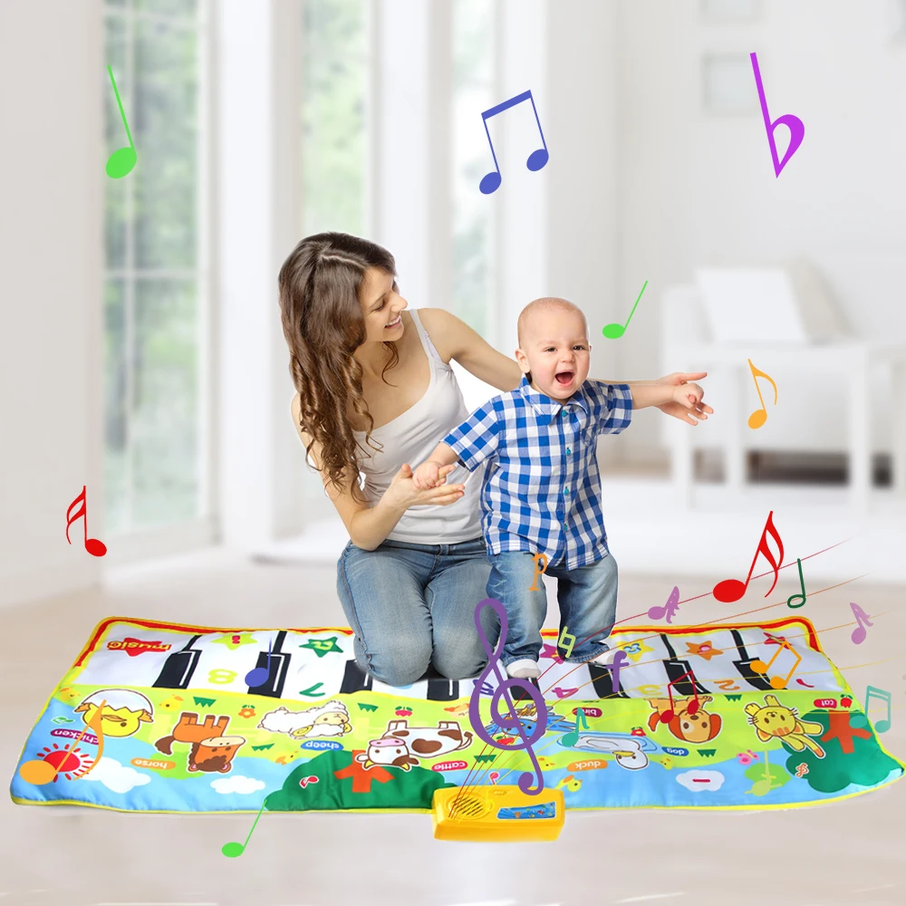 Детский музыкальный коврик, Электронный музыкальный ковер и забавные животные, звуковое пианино, игровой коврик, обучающий инструмент, игрушка, подарок на день рождения для детей