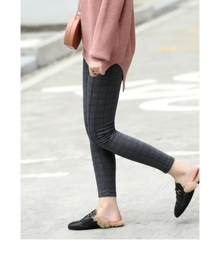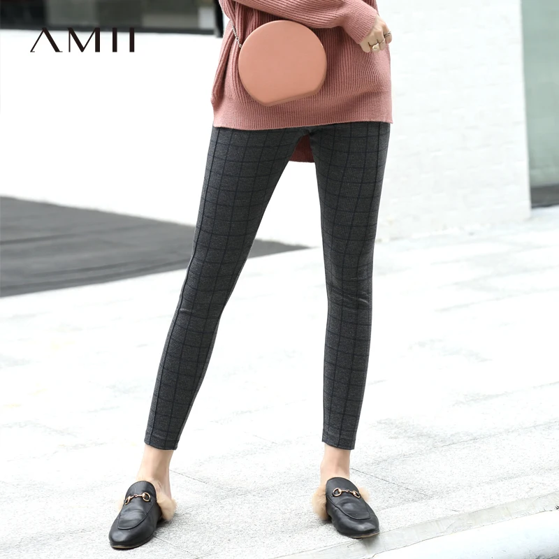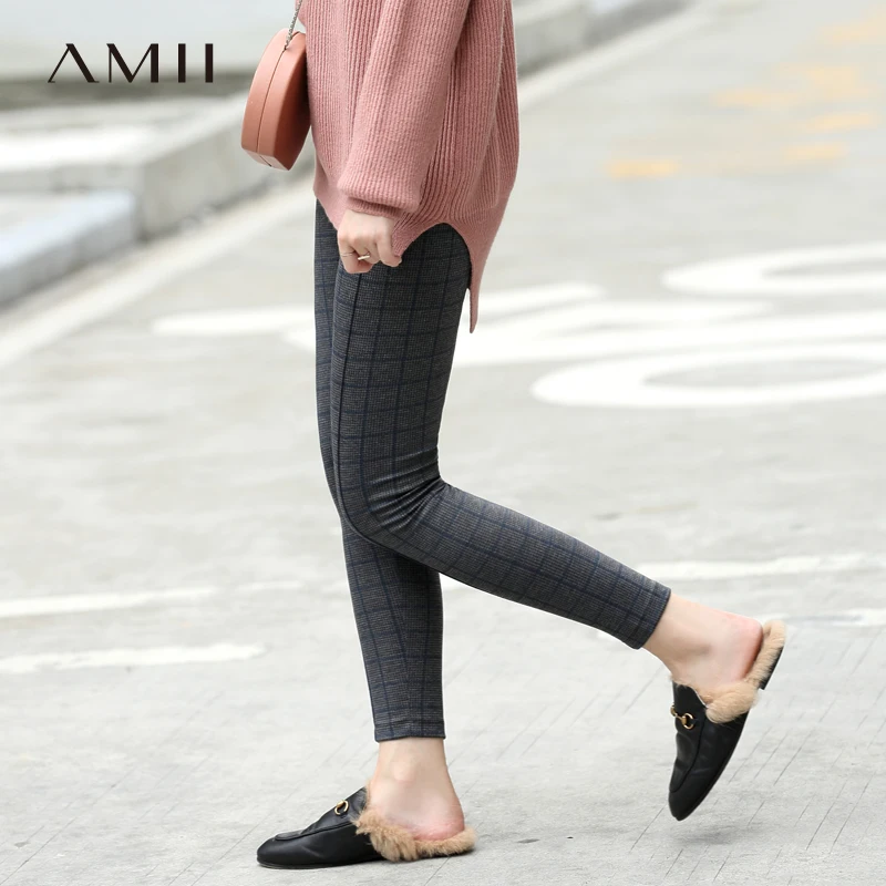 Женские леггинсы в клетку Amii, зимние однотонные облегающие длинные брюки, 11820146