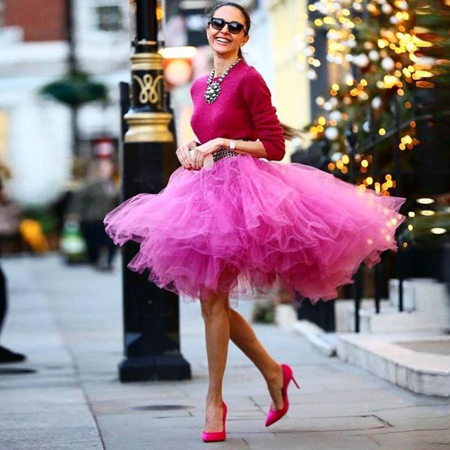 Женская пышная фатиновая юбка средней длины, ярко-розовая эластичная юбка-пачка до колен, на заказ, 2020