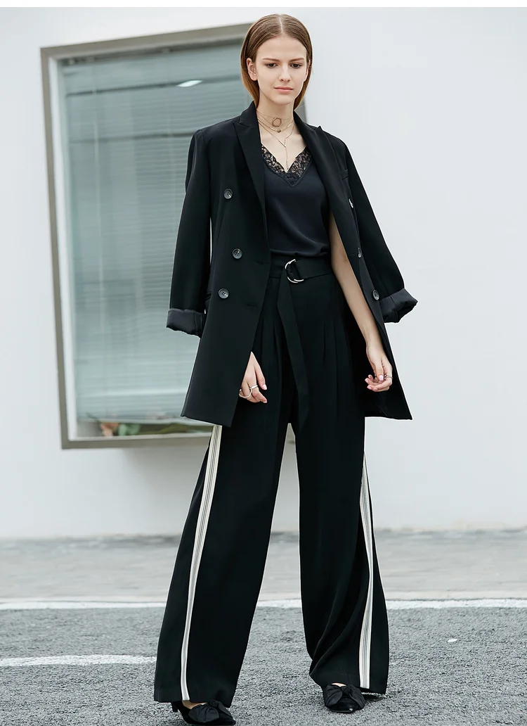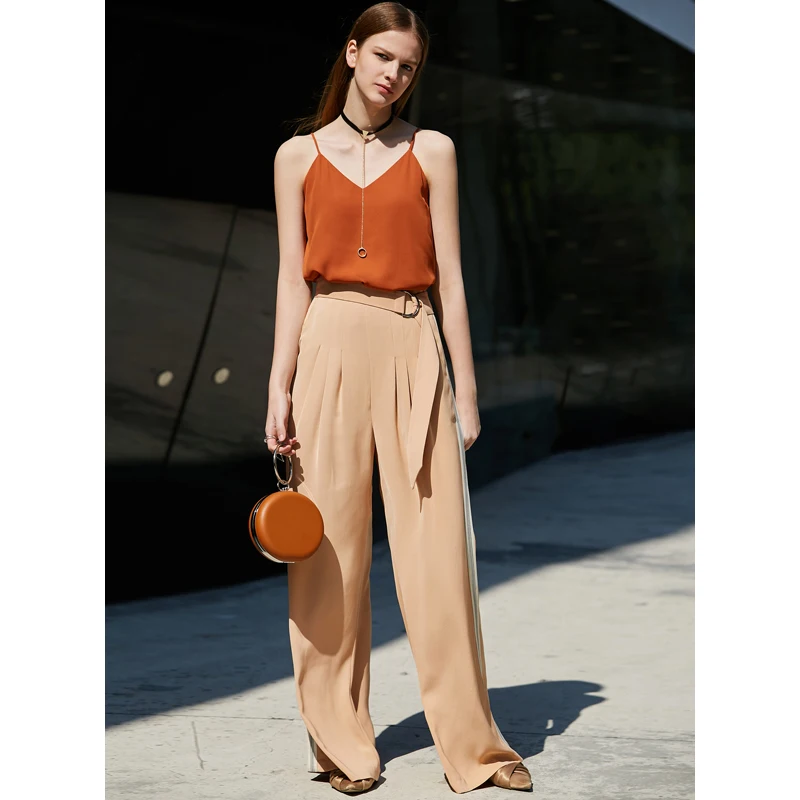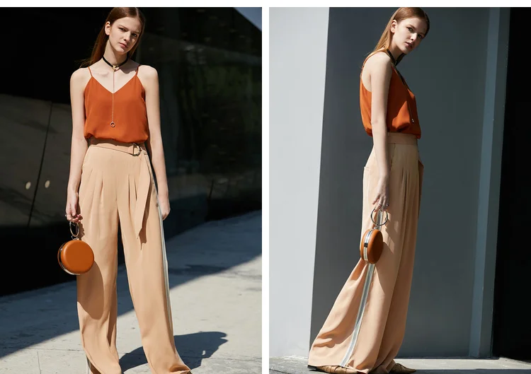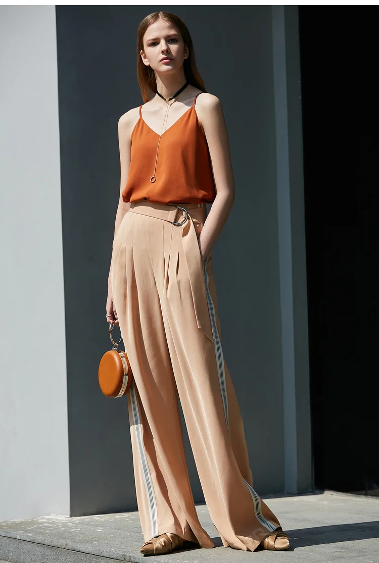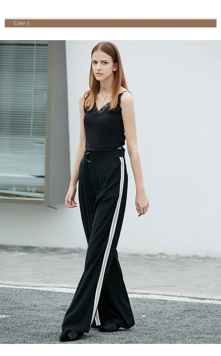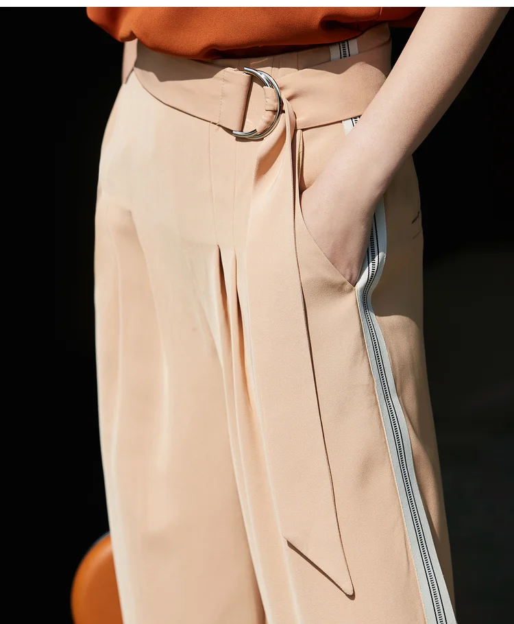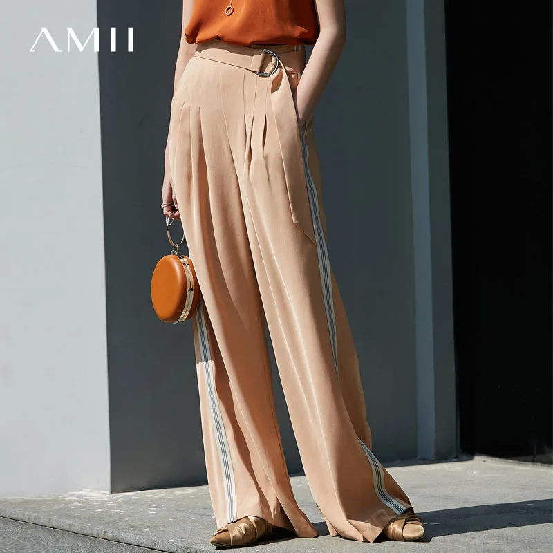 Женские шифоновые брюки с широкими штанинами Amii, однотонные свободные длинные брюки в минималистичном стиле с боковыми полосками, лето 11940318