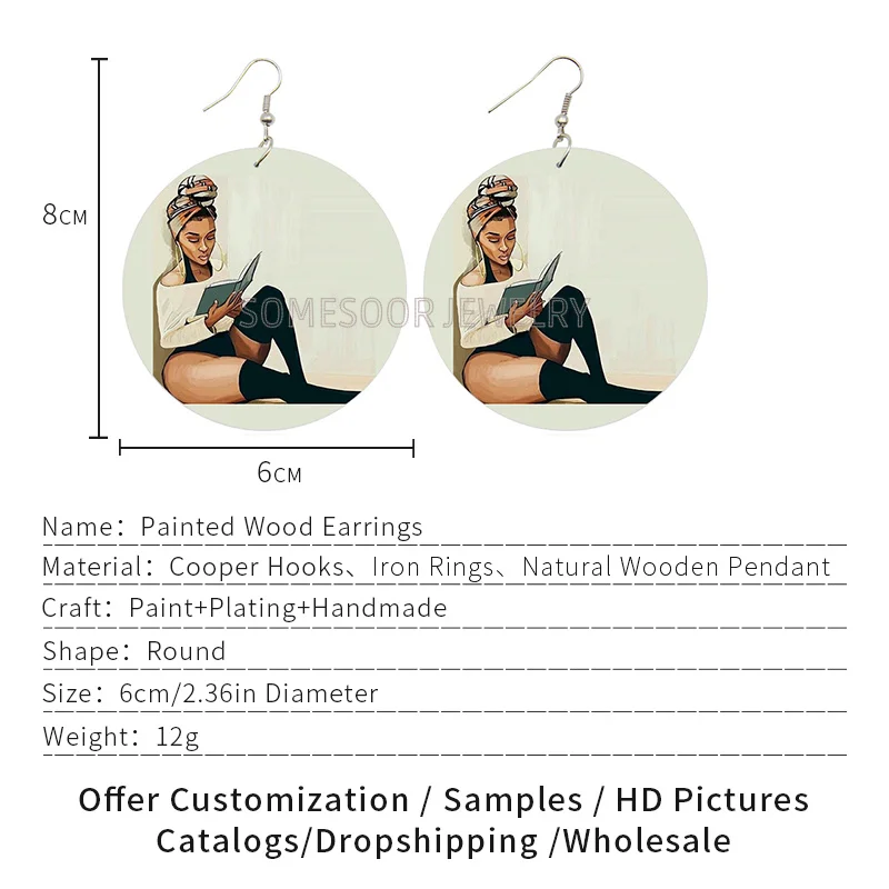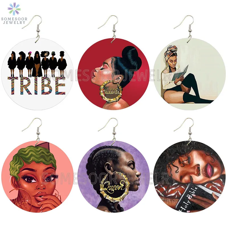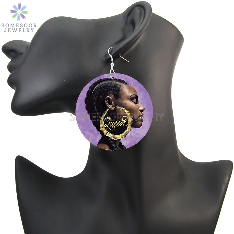 SOMESOOR модные черные богини племя деревянные висячие серьги афро натуральные волосы Locs допинг королева с обеих сторон Печатные для женщин Подарки