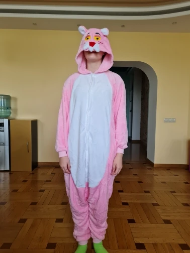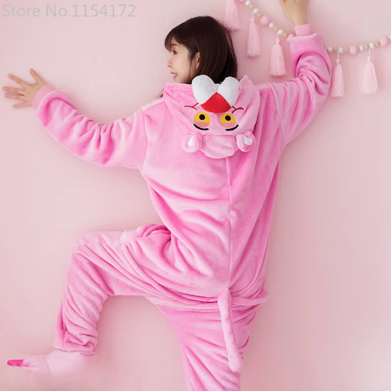 Кигуруми с длинным рукавом, с капюшоном, Розовая пантера, комбинезон, Женские Фланелевые Кигуруми для взрослых, цельная Пижама с животными, Kugurumi