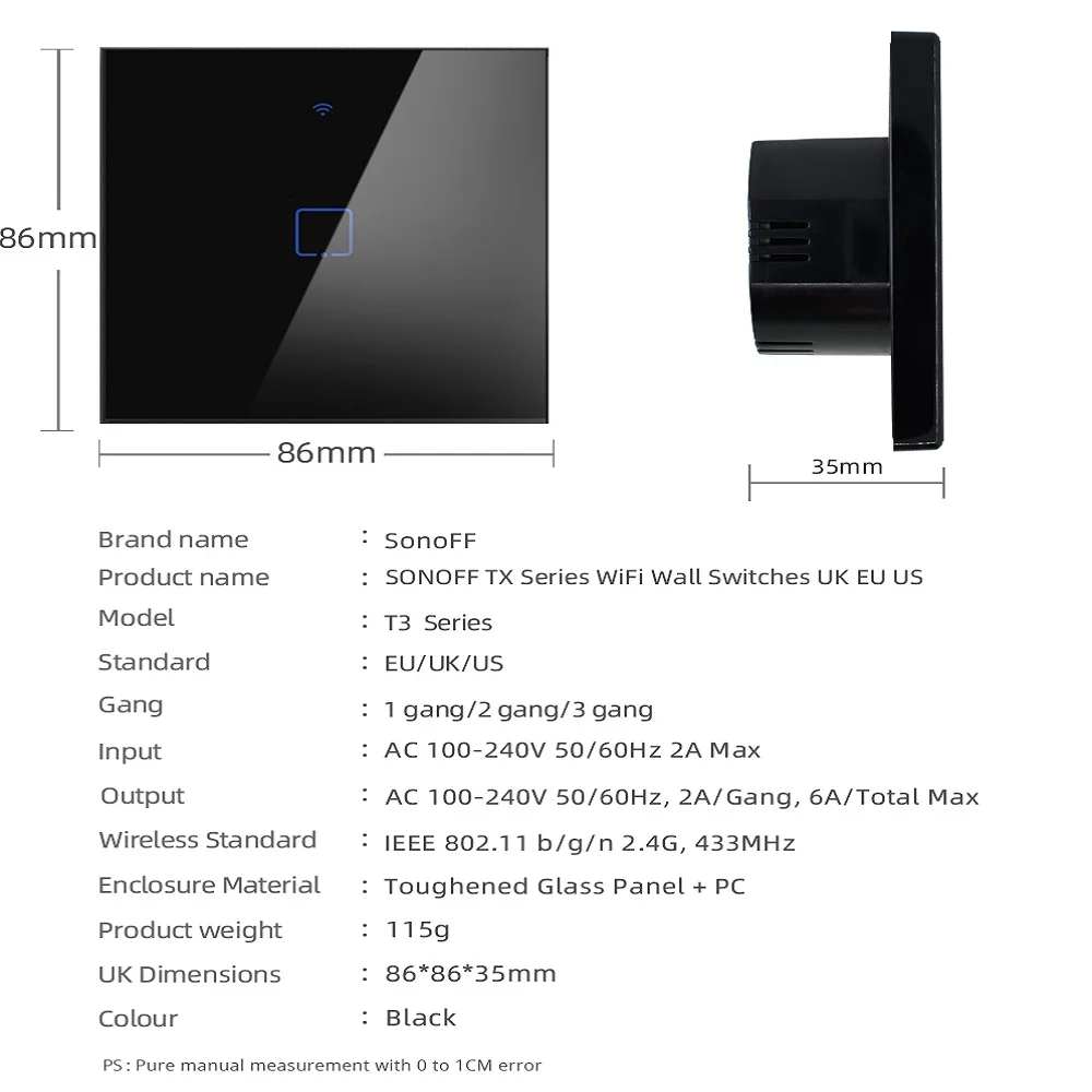 Function 1New SONOFF TX T3 EU UK US 1/2/3 Gang
