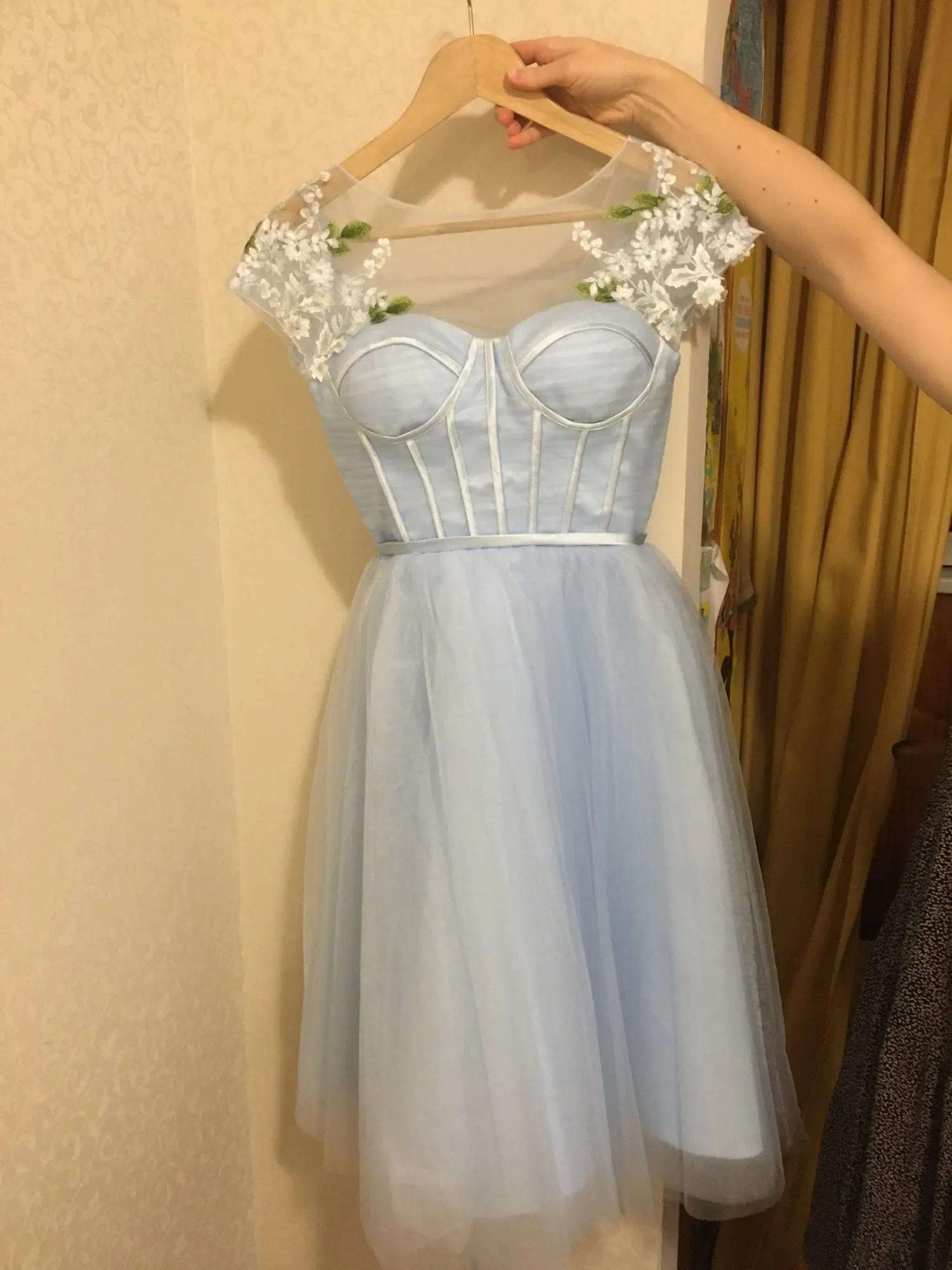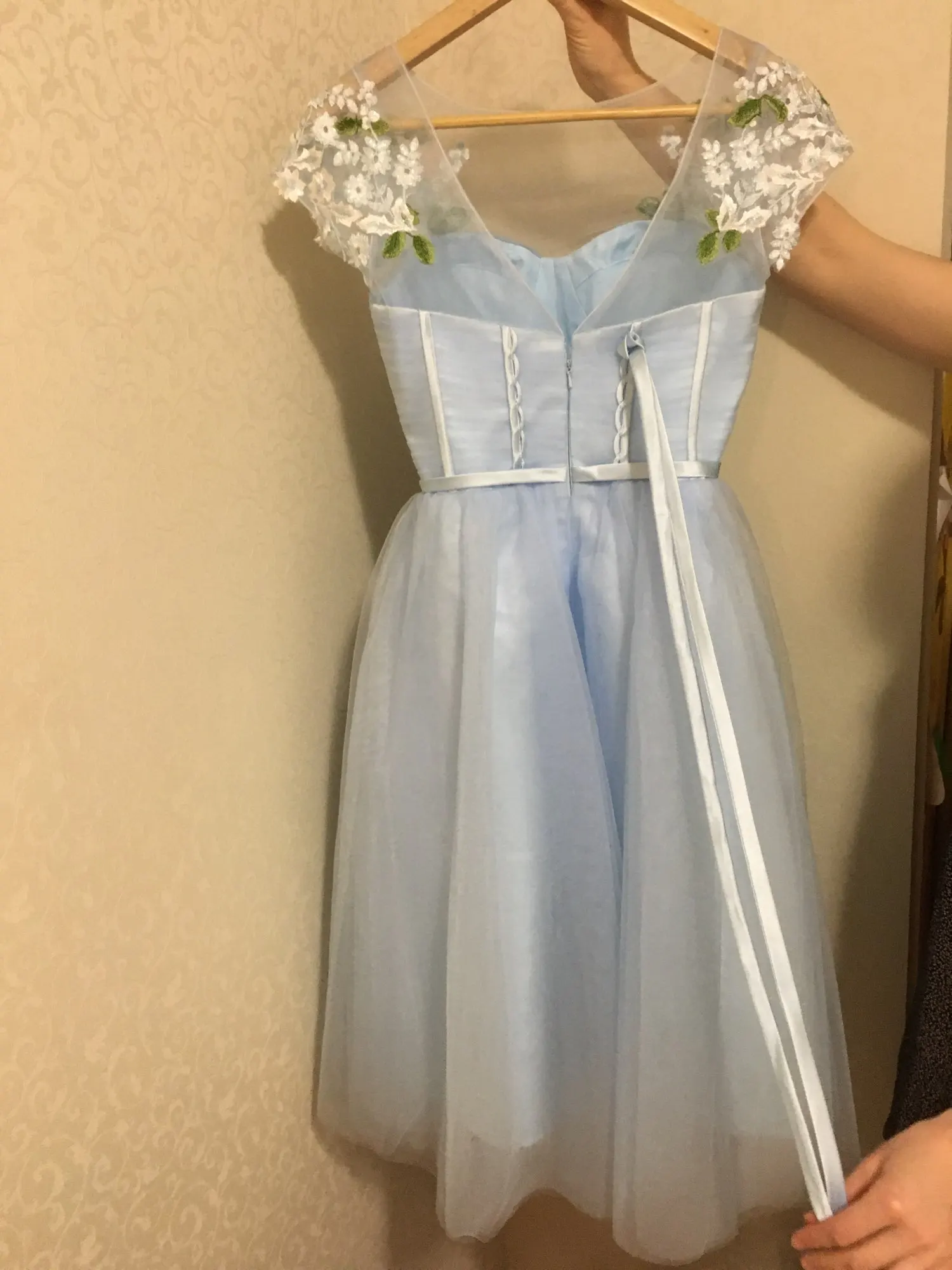 Отличное платье, хорошие и приятные материалы, оригинально смотрится, доставили быстро и четко, продавец отзывчивый. Мне показалось, что оно чуток хенд мейд в плане рукавов и свисающих с них кружевных цветов, но жена сказала все ОК.