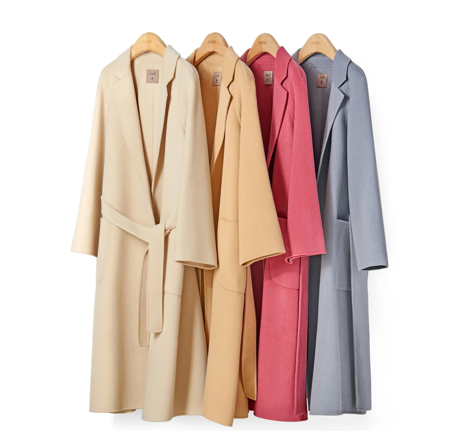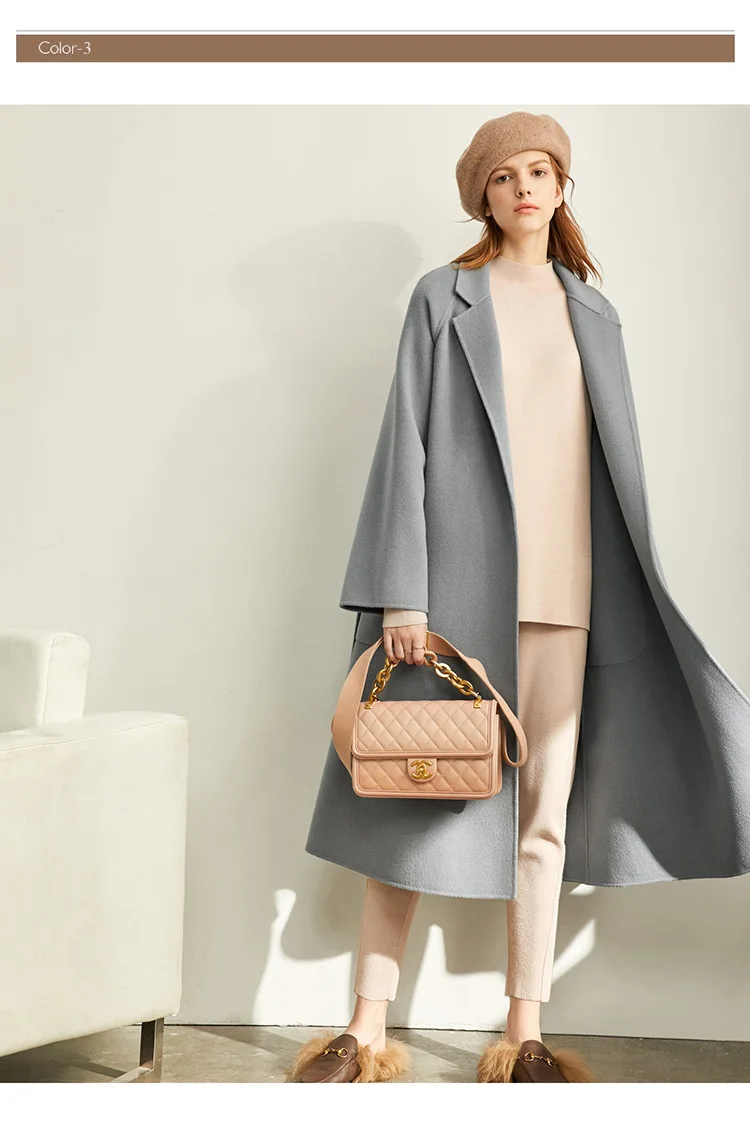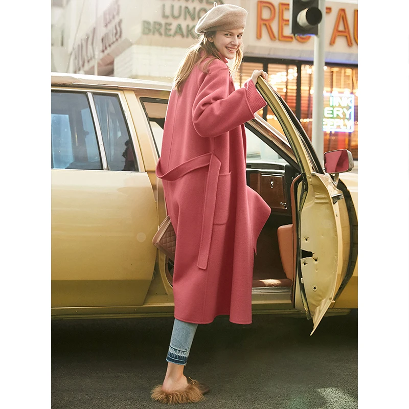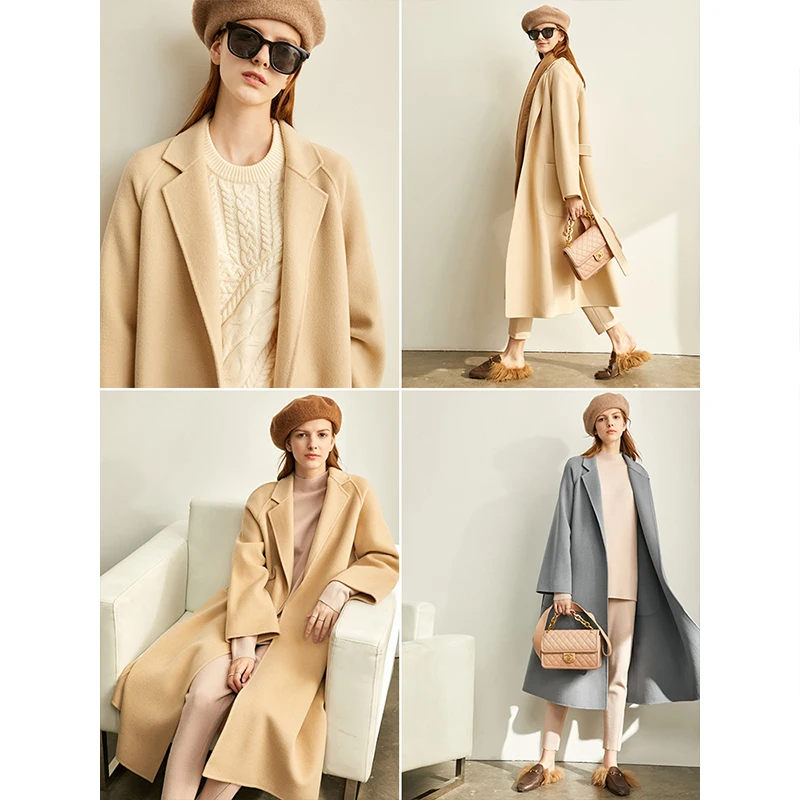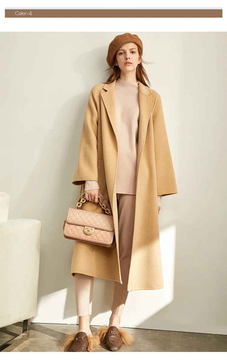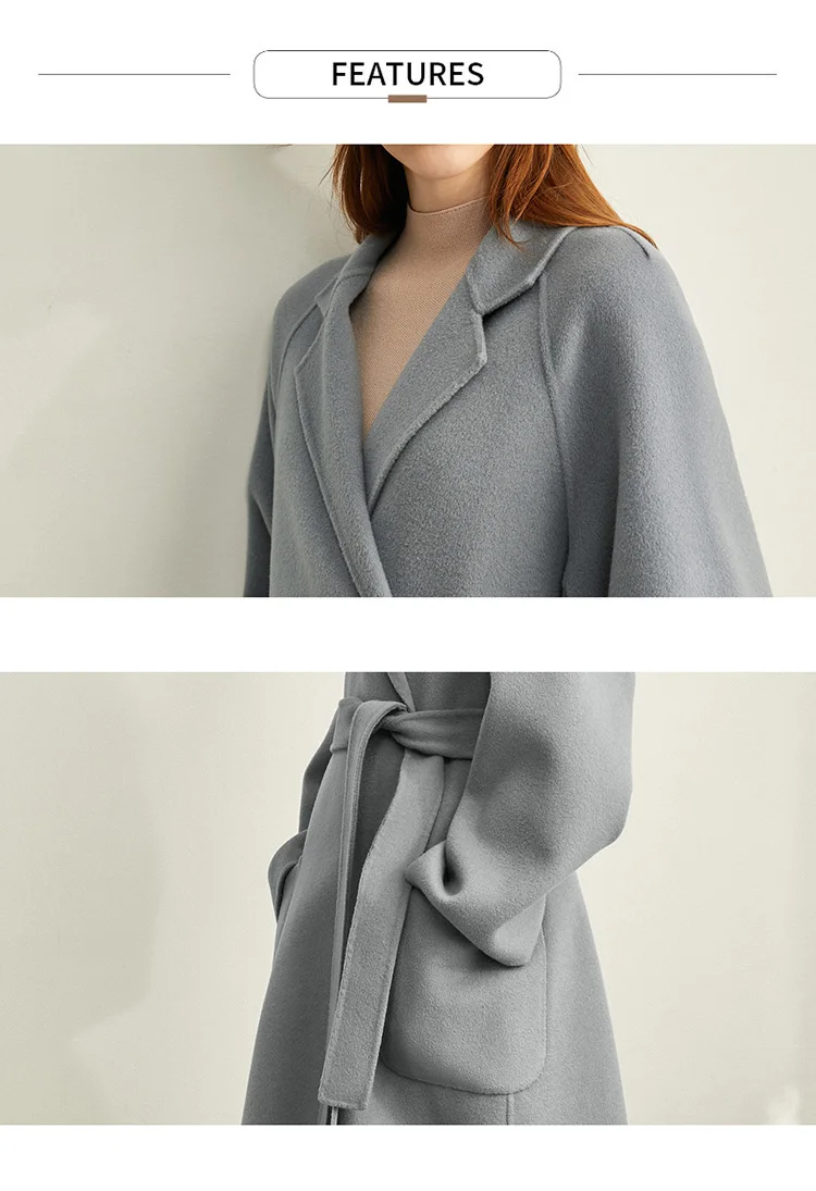Amii минималистичное шерстяное пальто с лацканами Зимнее женское однотонное свободное с поясом Женское шерстяное длинное пальто двойное шерстяное пальто 11920291