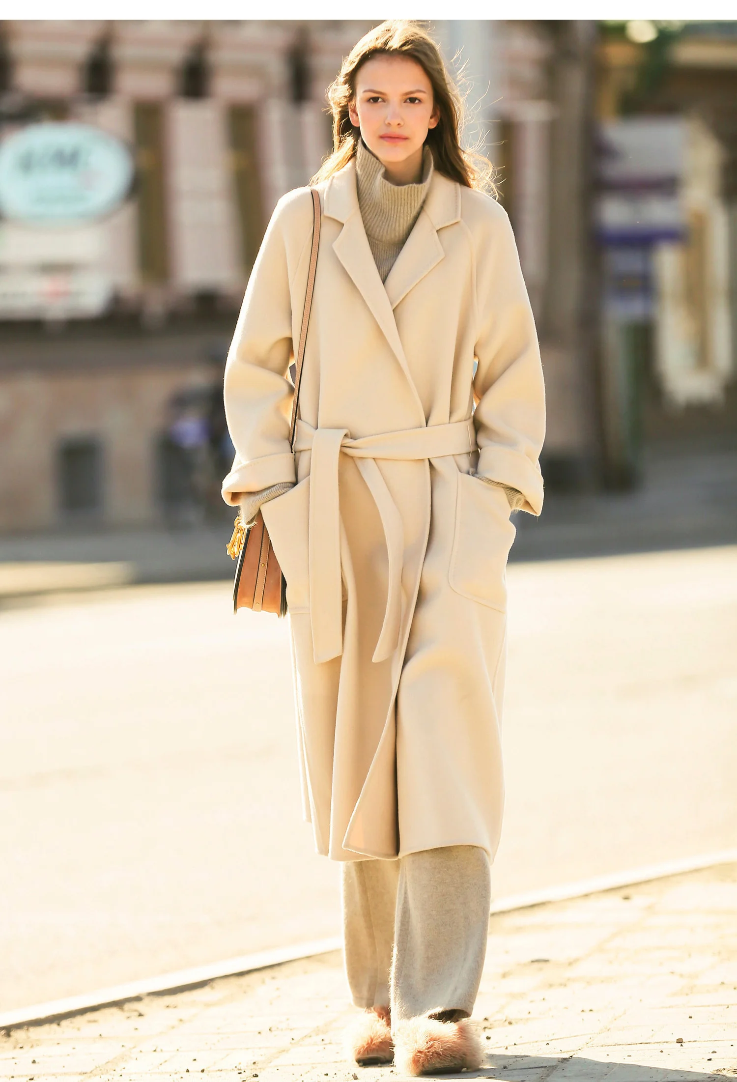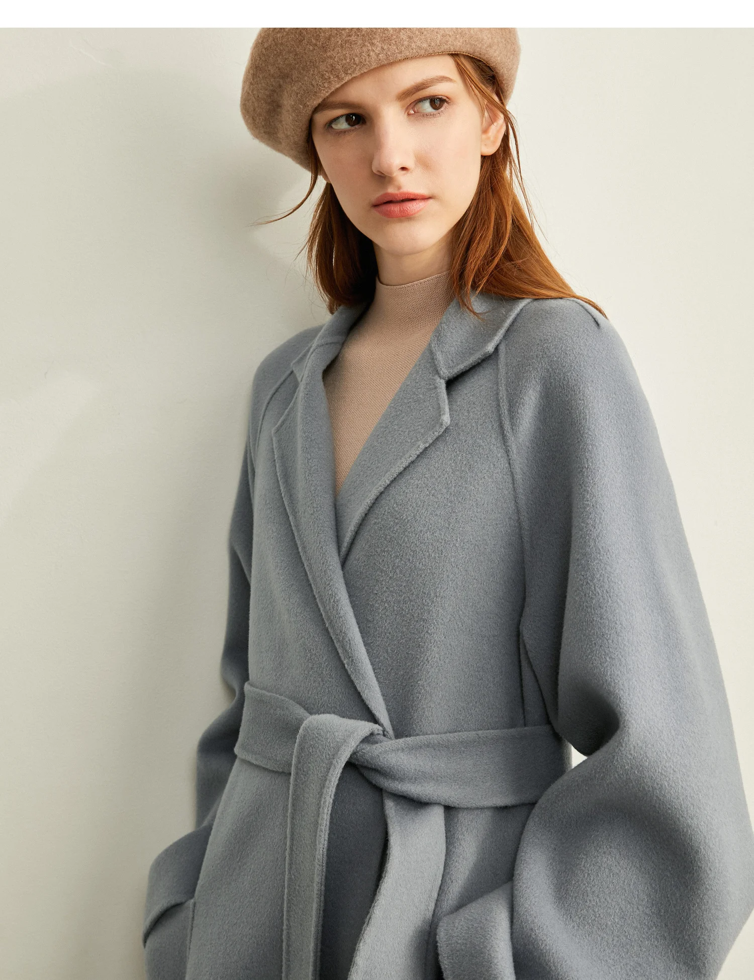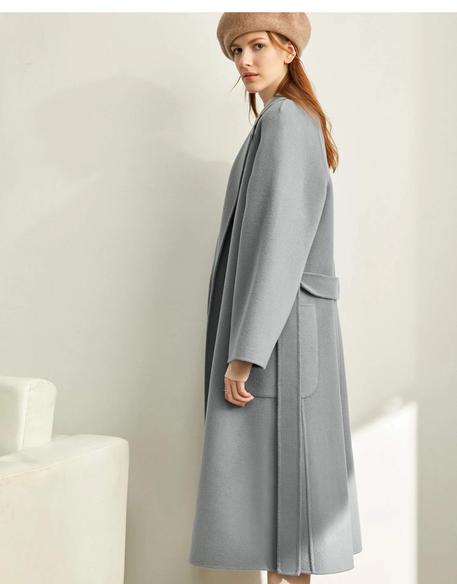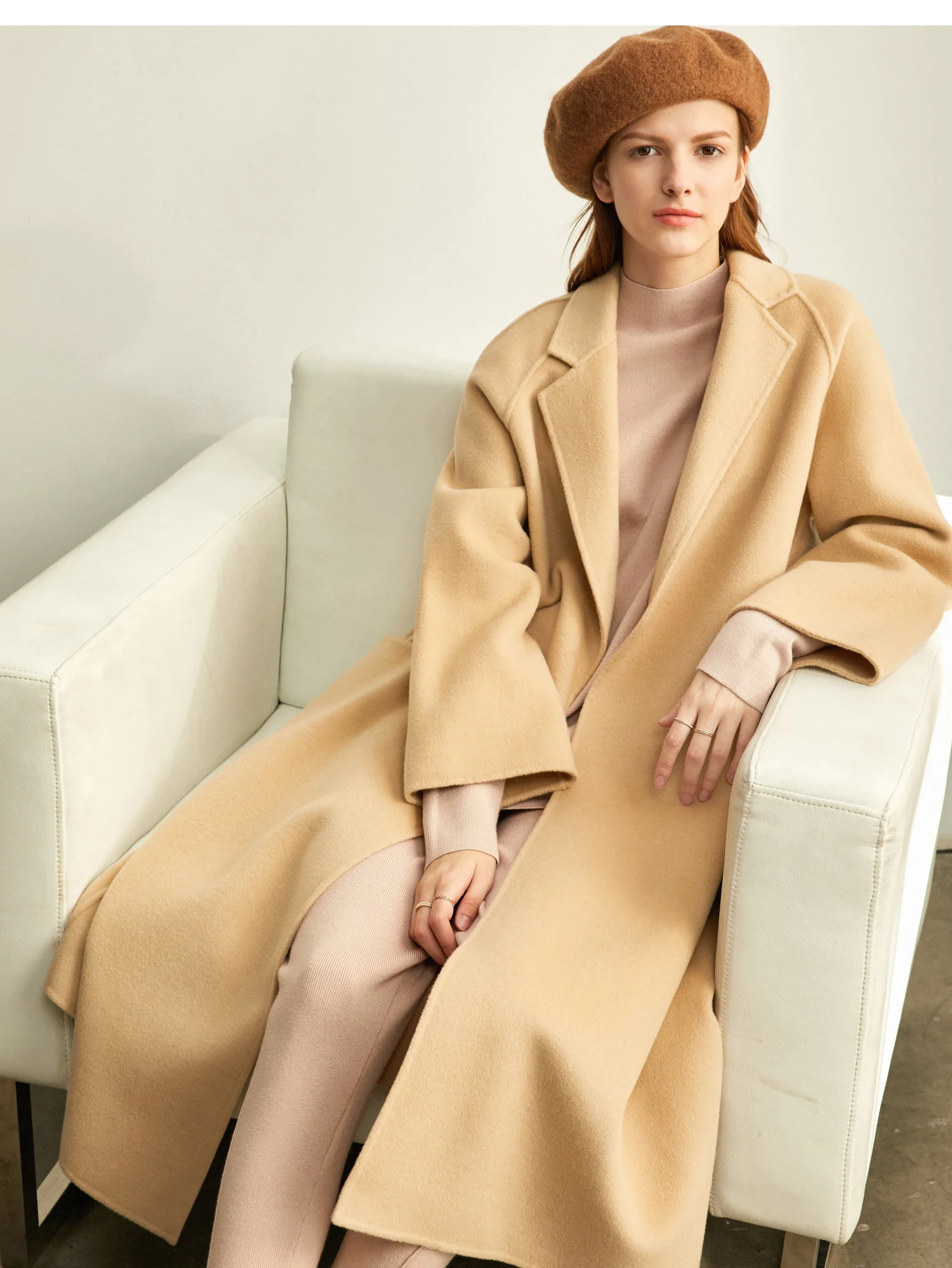 Amii минималистичное шерстяное пальто с лацканами Зимнее женское однотонное свободное с поясом Женское шерстяное длинное пальто двойное шерстяное пальто 11920291