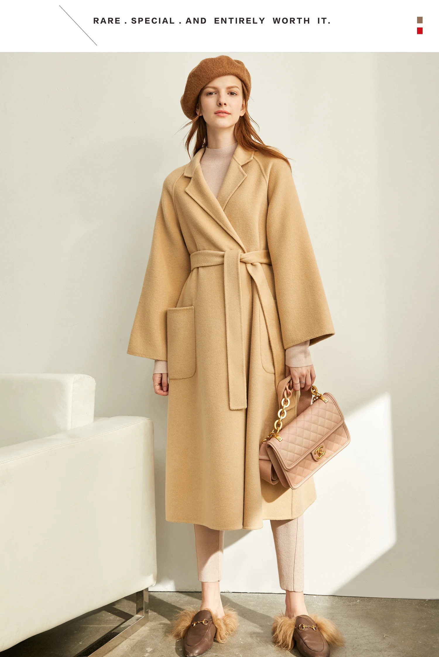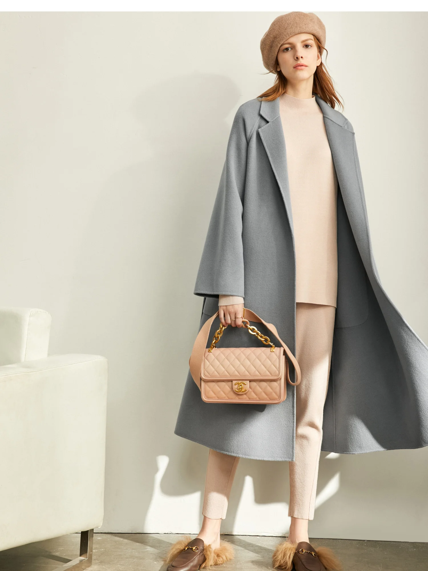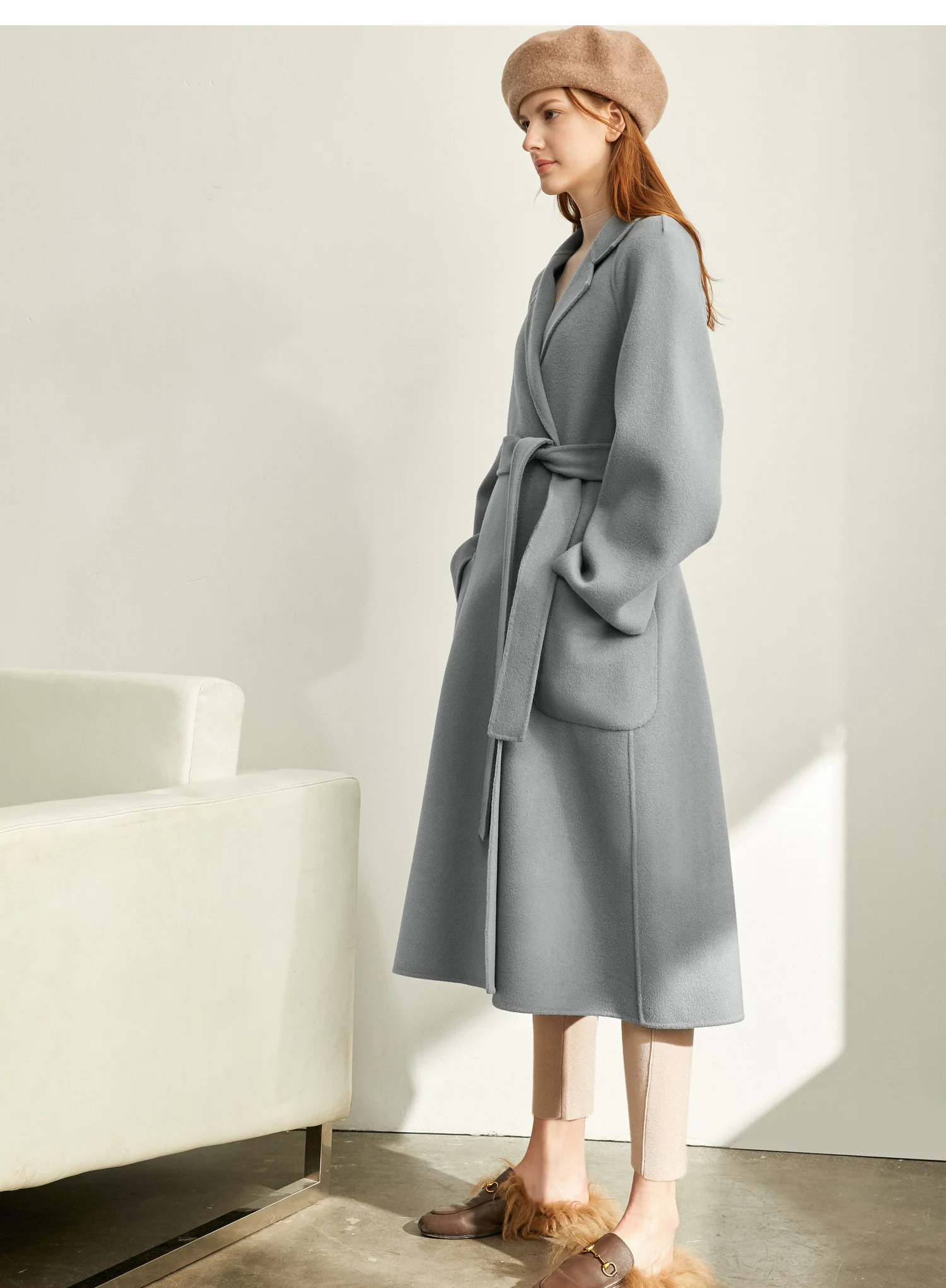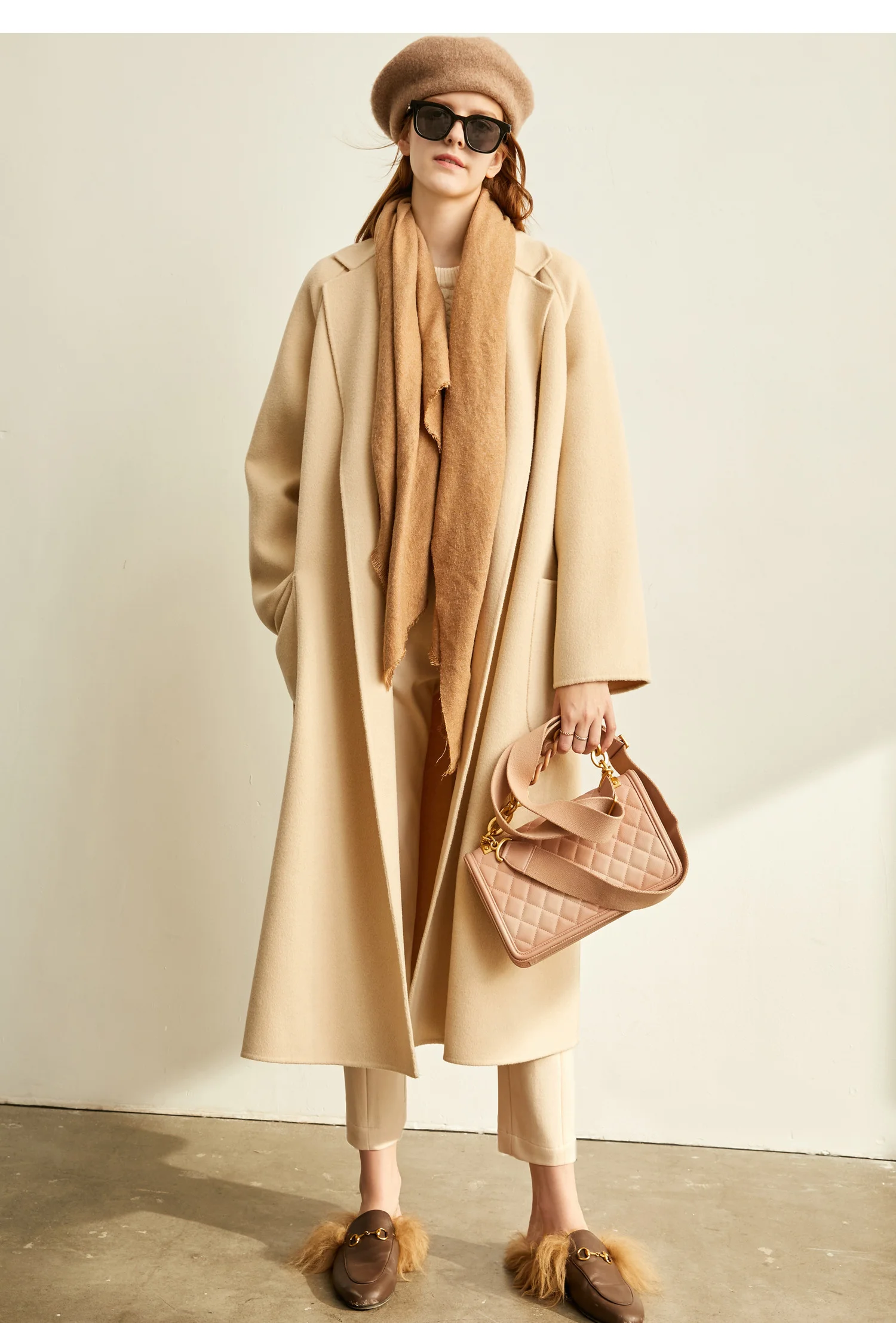 Amii минималистичное шерстяное пальто с лацканами Зимнее женское однотонное свободное с поясом Женское шерстяное длинное пальто двойное шерстяное пальто 11920291