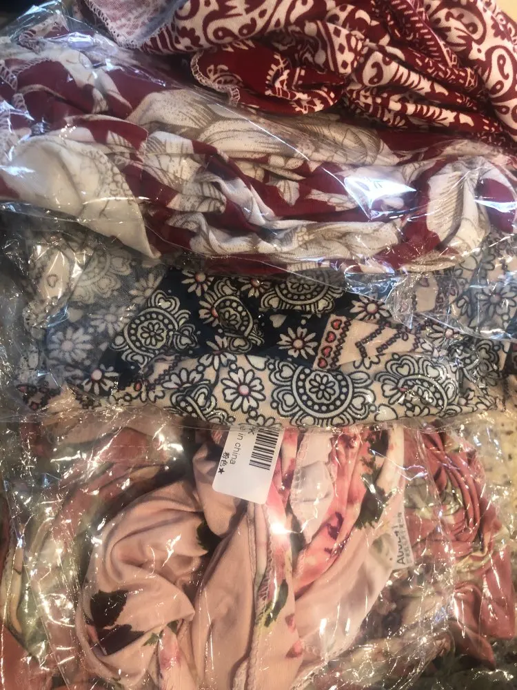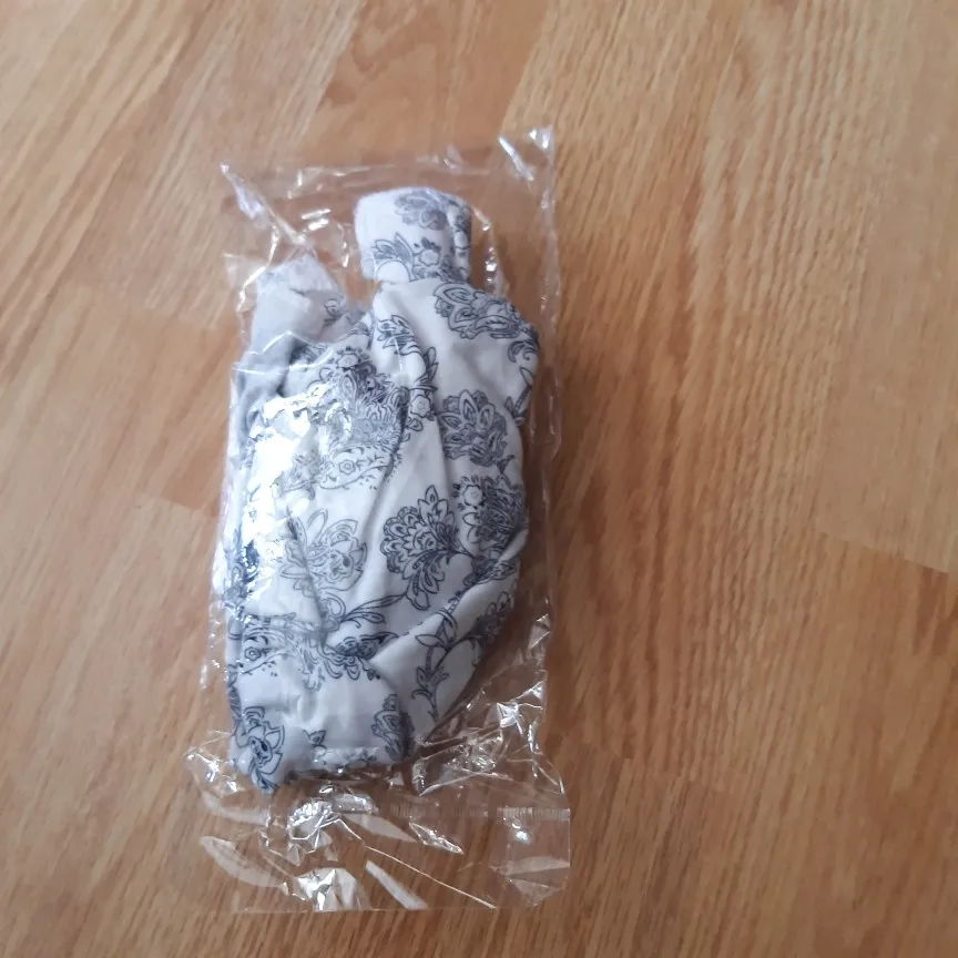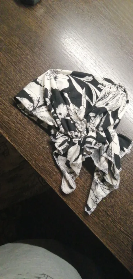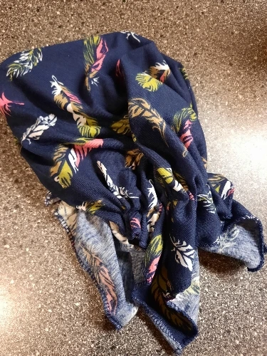 хорошая вещь, не нужно все время затягивать концы косынки. Трикотаж нежный, расцветка как на фото