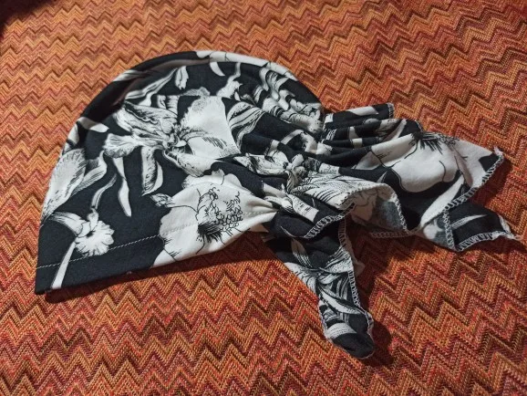 Очень понравился тюрбан, удобный, ткань мягкая, тянется, приятная к телу, одевать удобно, не надо концы завязывать, на голове невесомая. Доставка быстрая, за 10 дней. Продавца рекомендую.