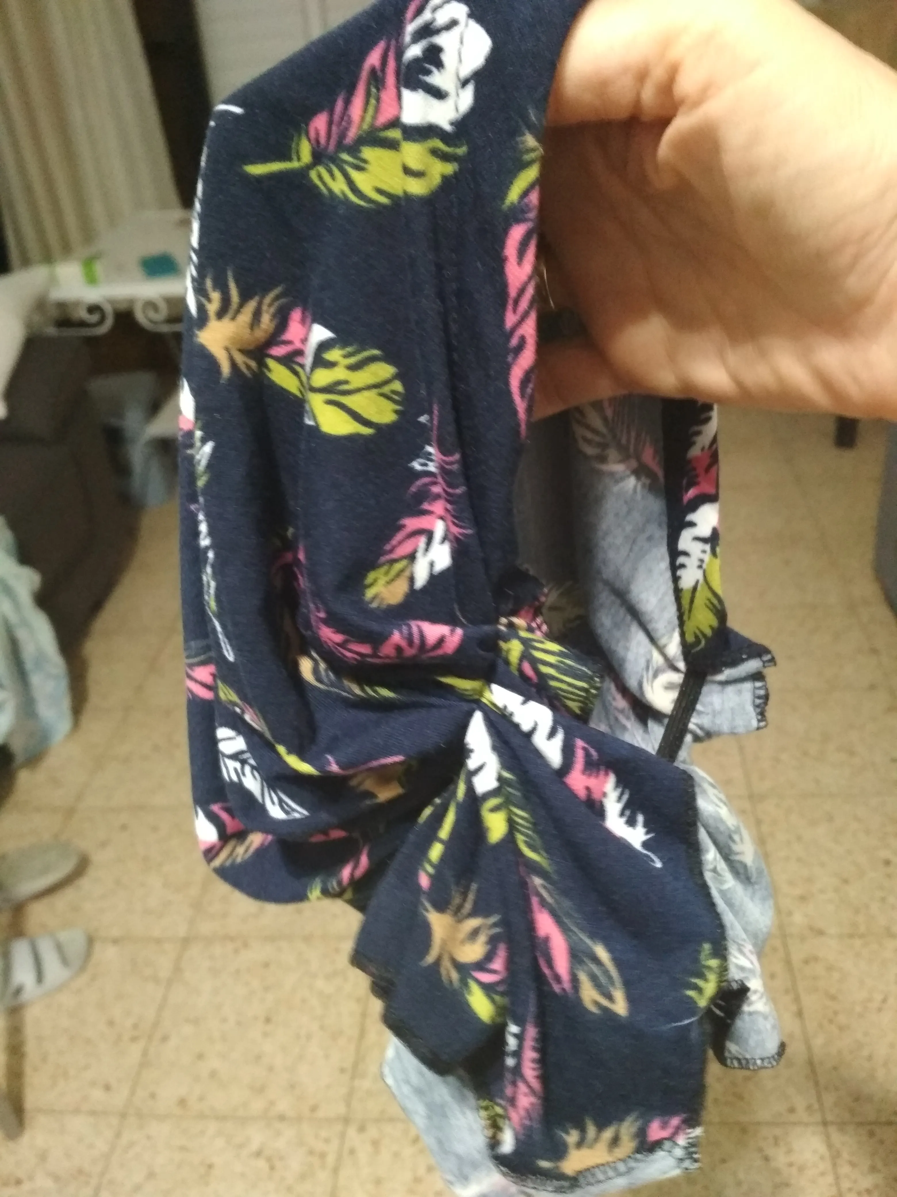 Задумка хорошая, но качество пошива оставляет желать лучшего. Сборка по резинке неравномерная, поэтому смотрится несимметрично. Буду перешивать. Открыла спор. Деньги вернули на следующий день.