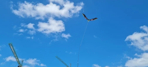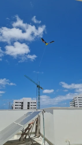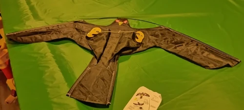 Птица большая, выглядит очень хорошо. Легко собрать, сшита из нейлона, аккуратно. Размер как в описании. Доставка достаточно быстрая. Упакована в простой пакет, но пришла без повреждений. Жду тёплых и ветренных деньков чтобы её проверить. Рекомендую. Спасибо продавцу.