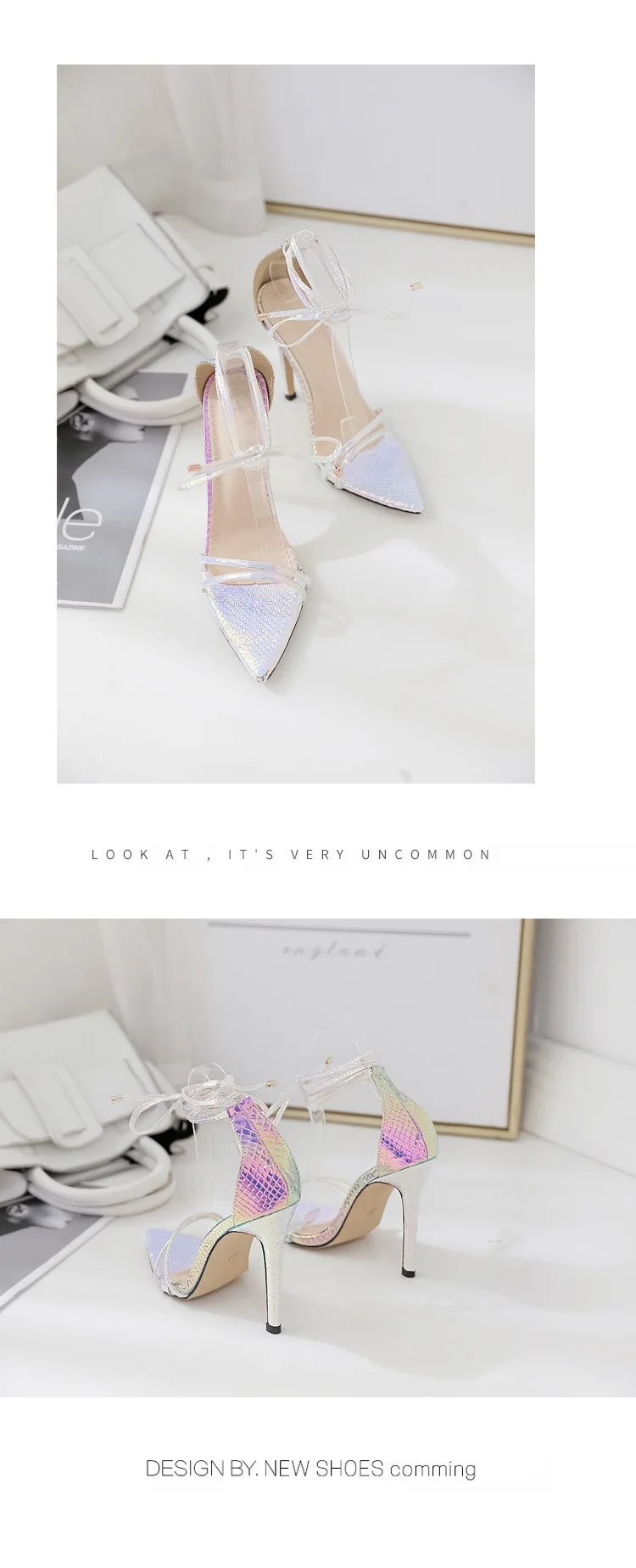 Туфли на высоком каблуке в европейском и американском стиле, серебристые босоножки с острым носком, женская обувь, размер 35-43