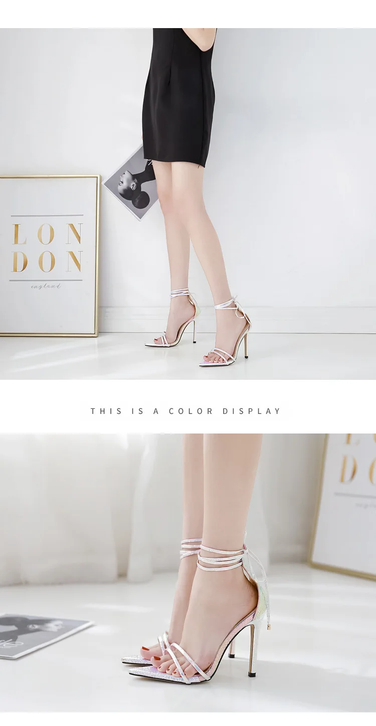 Сандалии женские на высоком каблуке 11,5 см, пикантные эластичные б...