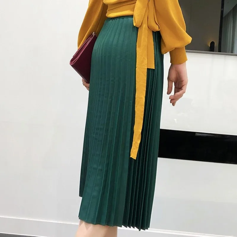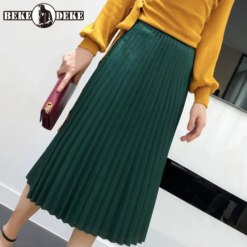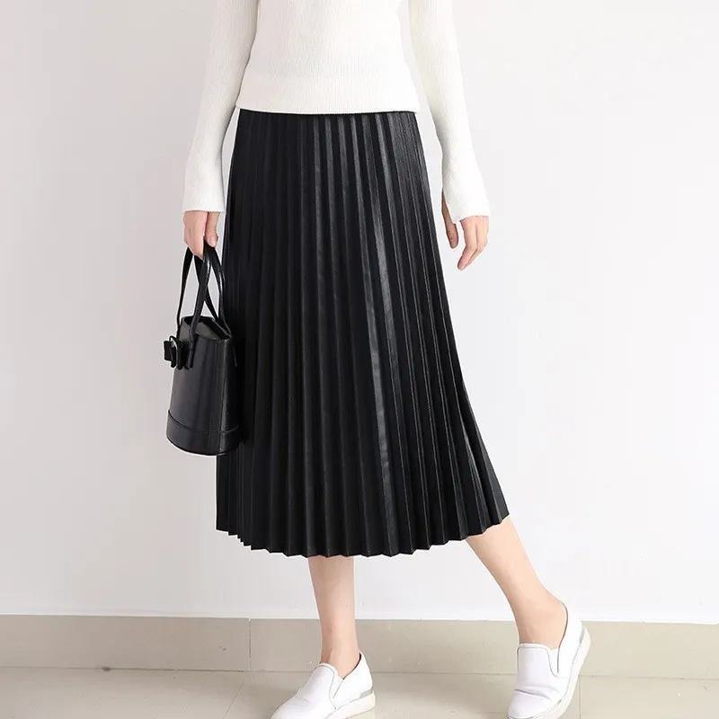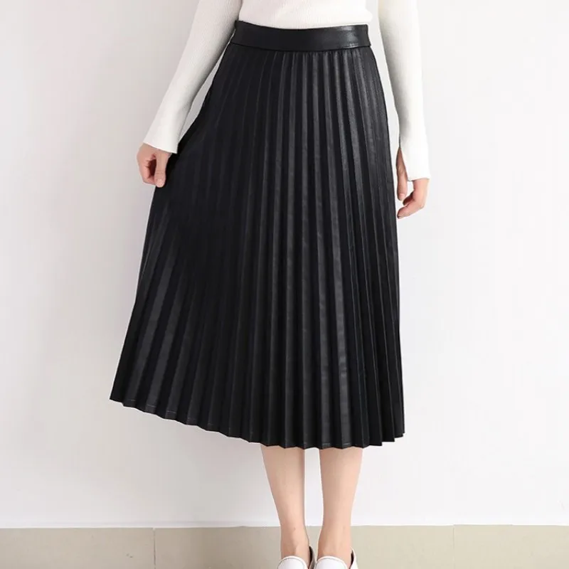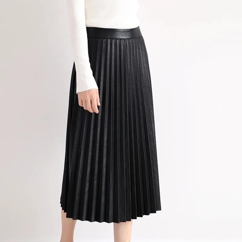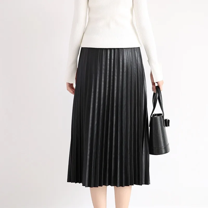 Юбка женская плиссированная до середины икры, Элегантная Модная длинная винтажная из натуральной овечьей кожи, уличная одежда