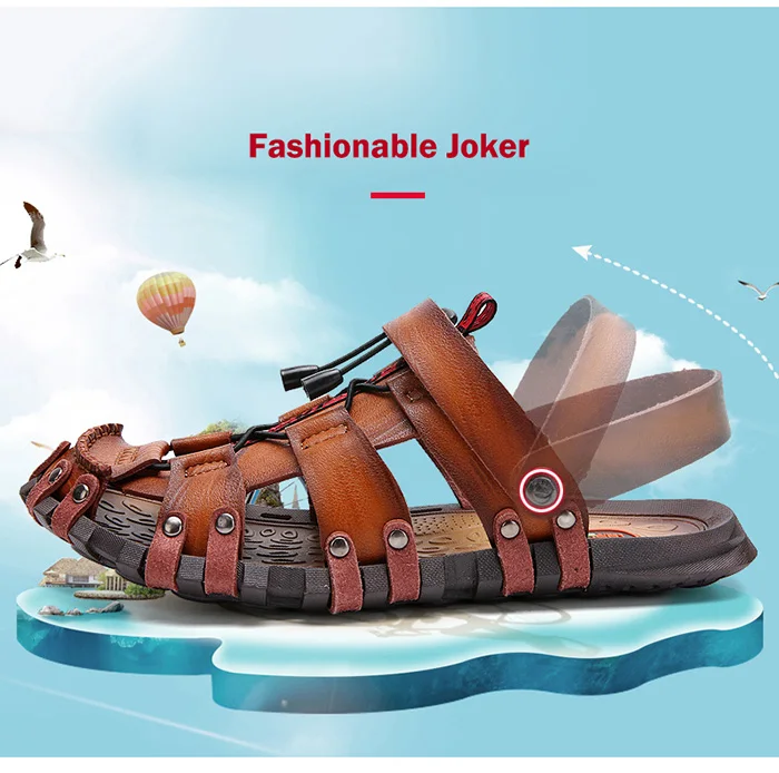 Мужские сандалии, летняя пляжная обувь, модные сандалии из натуральной кожи, повседневная мужская обувь, уличные сандалии, мужские шлепанцы, большой размер 47